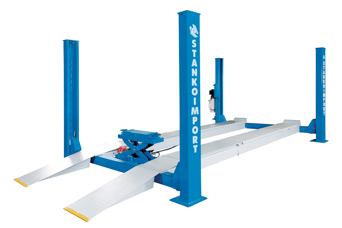 Электрогидравлический подъемник «Станкоимпорт» ПГ4-5.5 (М) предназначен для подъема автомобилей на определенную высоту с целью их ремонта и обслуживания. Используется в автосервисах, автомастерских и гаражах.