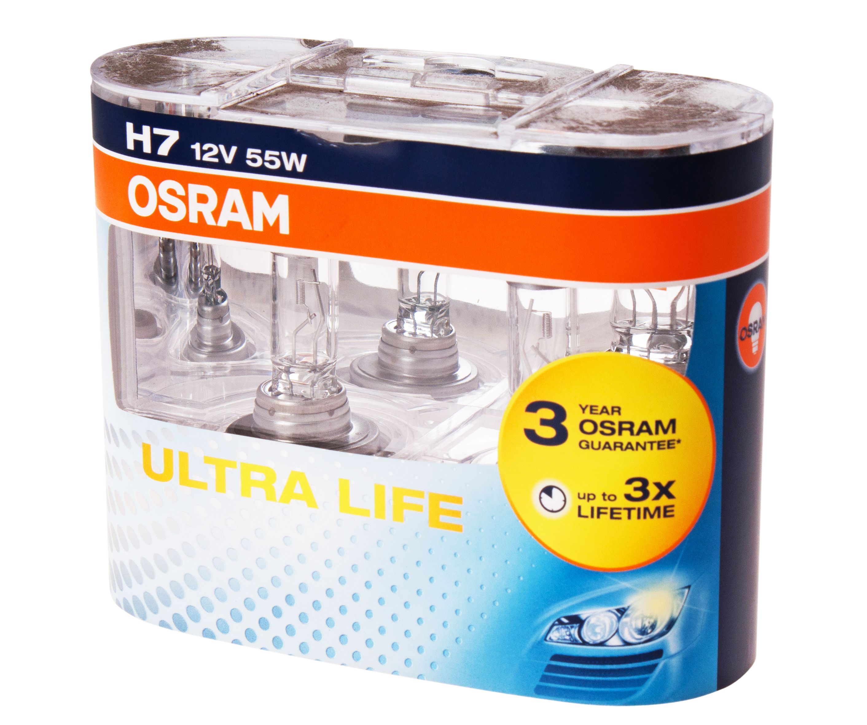 Автомобильные лампы головного света OSRAM ULTRA LIFE не знают себе равных, когда речь заходит о долговечности. Они впечатляют своим сроком службы: по сравнению по стандартными галогенными лампами они служат до четырех раз дольше, что эквивалентно 100 000 км пробега (при среднем годовом пробеге 14 259 км и использовании ламп 60% времени). OSRAM смело предлагает на лампы ULTRA LIFE гарантию сроком 4 года (четвертый год гарантии предоставляется только при условии онлайн-регистрации продукта на странице www.osram.com/am-guarantee).