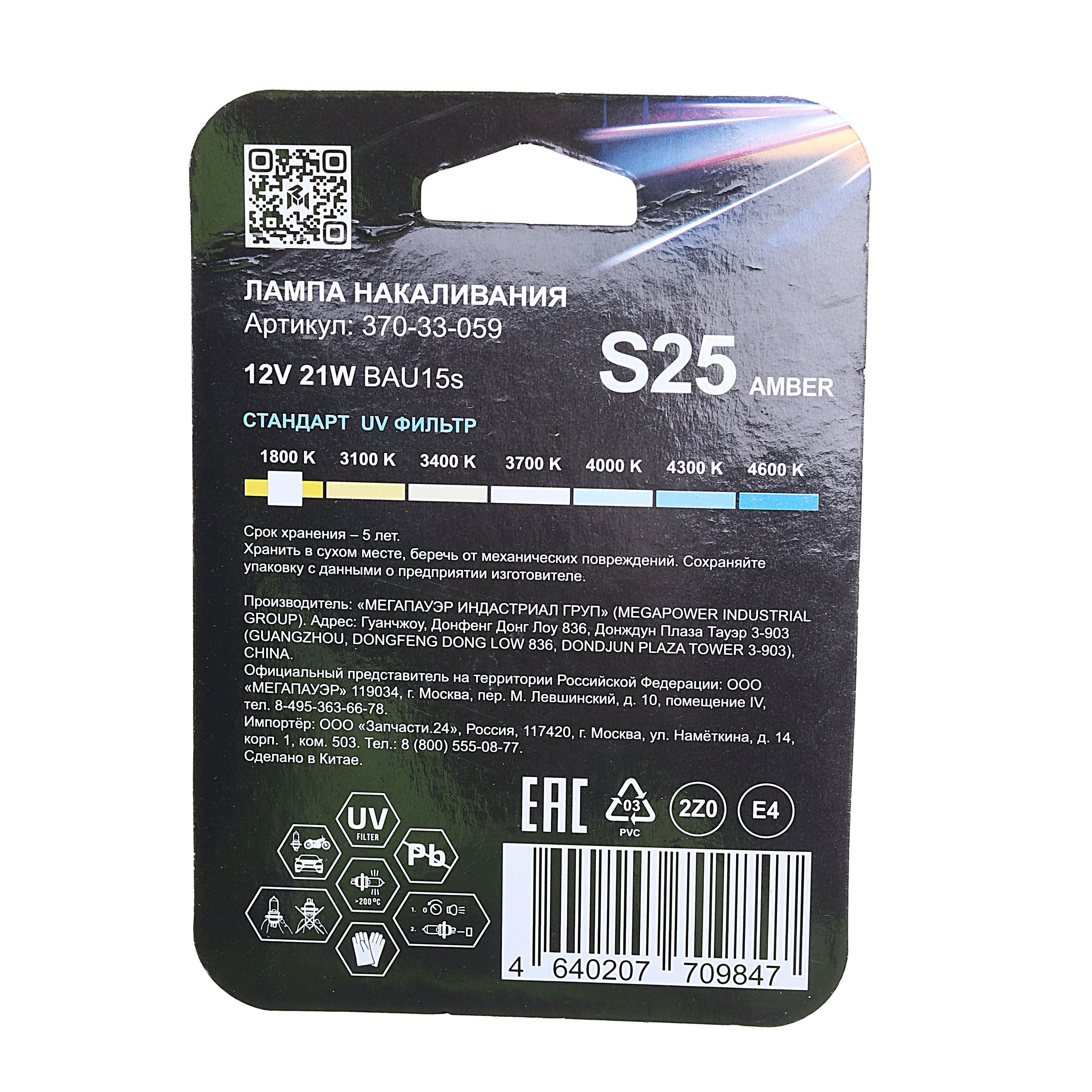 Лампа автомобильная PY21W от MEGAPOWER — это ваш верный помощник в любых условиях.