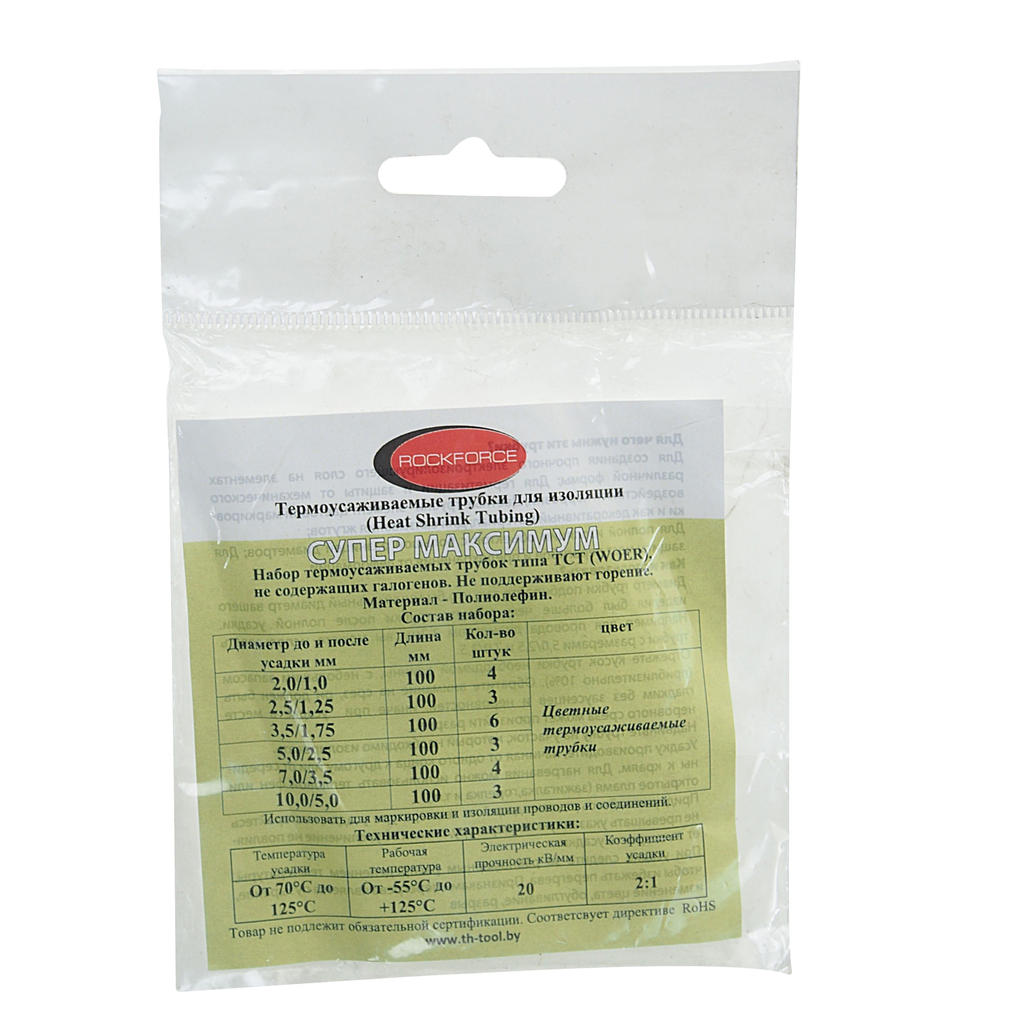 Набор трубок RockForce клеевых т/ус "Супер-Максимум"(Ø до/после усадки 2.0.0-4шт 2.5.25-3шт 3.5.75-6шт 5.0.5-3шт 7.0/3.5-4шт 10.0.0мм-3шт;L-10инструмент предназначен для осуществления необходимых операций, при этом позволяет их выполнять быстро и без потери качества, проводимых работ. Изделия будет отличным дополнением в инструментарии профессионального автомеханика. Модель проходит контроль качества на заводе изготовителя, и повторный контроль перед поступлением в продажу.