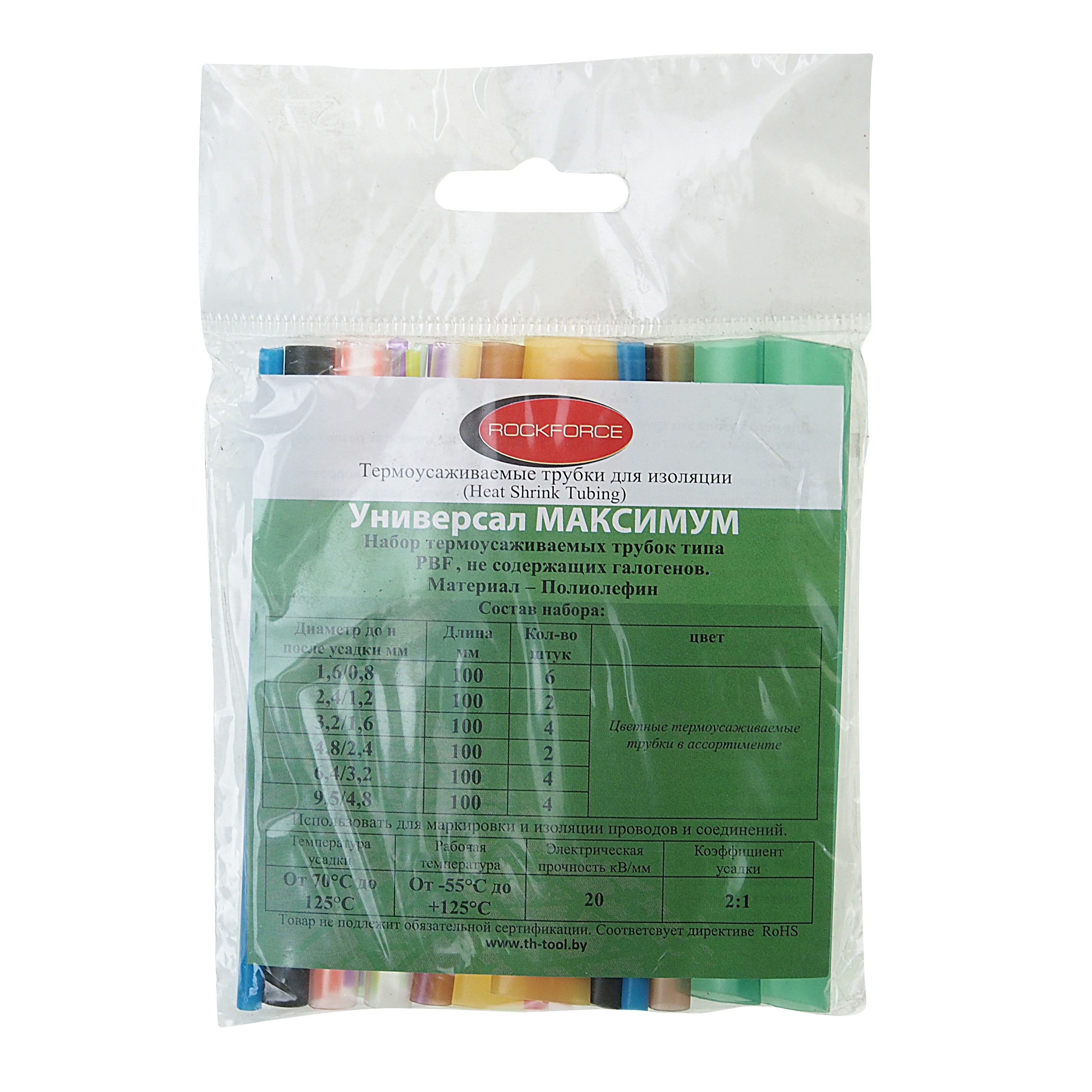 Набор трубок RockForce клеевых т/ус "Универсал-Максимум«(Ø до/после усадки 1.6/0.8-6шт 2.4.2-2шт 3.2.6-4шт 4.8.4-2шт 6.4/3.2-4шт 9.5.8мм-4шт;L-1инструмент предназначен для осуществления необходимых операций, при этом позволяет их выполнять быстро и без потери качества, проводимых работ. Изделия будет отличным дополнением в инструментарии профессионального автомеханика. Модель проходит контроль качества на заводе изготовителя, и повторный контроль перед поступлением в продажу.