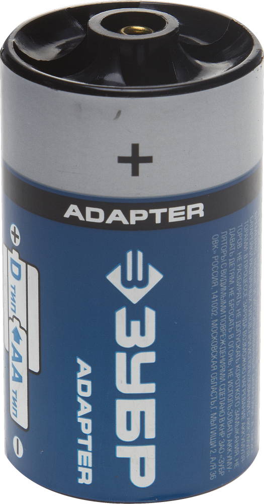 Адаптер с АА на D (4 шт) для Ni-Mh аккумуляторов Зубр 59278-4D - это переходник, который позволяет использовать стандартные батарейки (тип АА) и никель-металлогидридные аккумуляторы вместо элементов питания типа D.