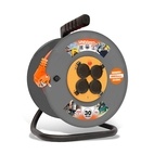 предназначен для питания электроприборов и электроинструмента, которые в силу каких-либо причин не могут быть подключены к стационарно установленным розеткам и требуют большой мощности. Удлинитель имеет цельнолитой корпус из полипропилена типа «катушка», закрепленный на металлической стойке. Стойка изготовлена из сварной стальной трубы диаметром 18 мм и толщиной стенки 1 мм. Для удобства переноски удлинителя предусмотрена эргономичная ручка. Сетевой шнур изготовлен из провода ПВС оранжевого цвета и армирован неразборной литой вилкой в цвет провода. Удлинитель имеет 4 гнезда розеток, оснащенных защитными шторками, и автоматический термовыключатель, предохраняющий удлинитель от перегрузок. Силовые и заземляющие контакты изготовлены из латуни.