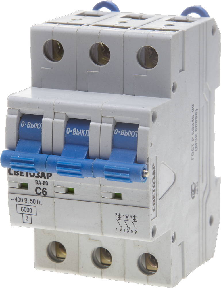 Автоматический 3-полюсный выключатель СВЕТОЗАР ″C″, 6 кА, 400 В выполняет функцию защиты установок от перегрузок и коротких замыканий. Он применяются в жилых, промышленных и административных зданиях. Главная особенность при выборе выключателя: он должен соответствовать напряжению и расчётному току цепи. Прибор выключает сеть при 5-10 кратном превышении номинальной силы тока. Выключатель превосходит параметры ГОСТ (от -5°С до +40°С), поскольку устойчив к температурам от -40°С до +45°С.