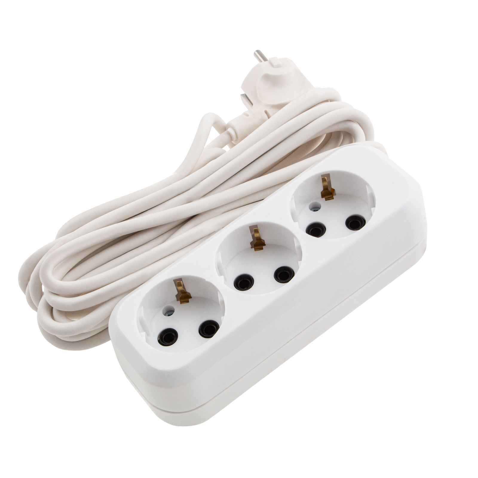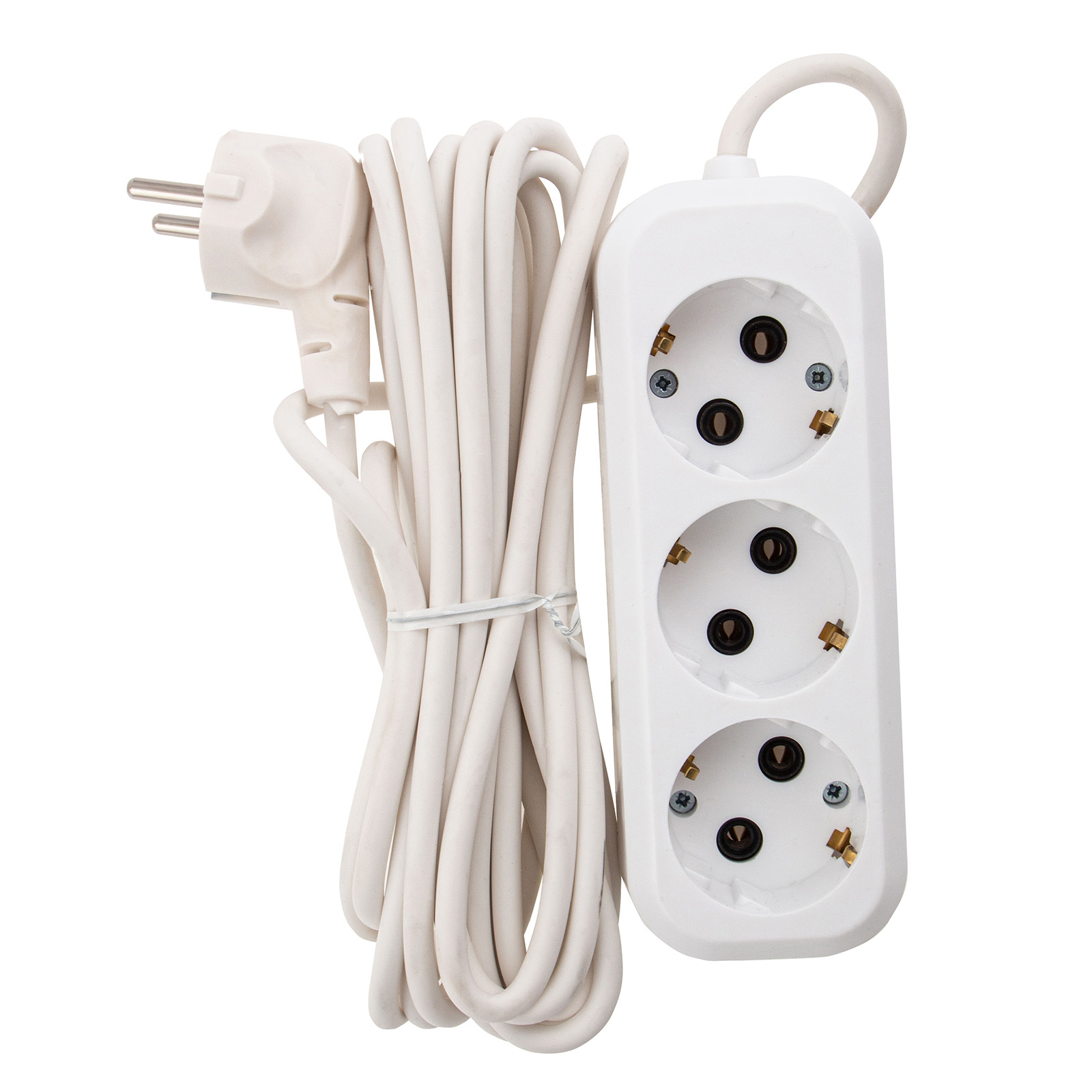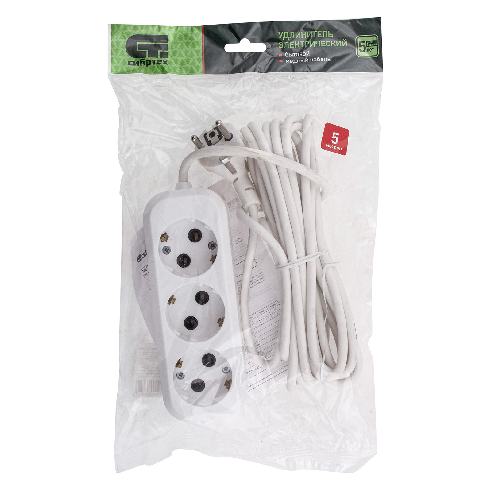 Белый бытовой удлинитель Сибртех 96067, тип УХз-10, 10 А, с заземлением, имеет 3 розетки для подключения бытовых и осветительных приборов на расстоянии до 5 м от источника электроснабжения. Медный кабель рассчитан на нагрузку не более 2200 Вт. Удлинитель удобен для бытового применения.ПреимуществаКорпус выполнен из прочного и износостойкого пластика, что обеспечивает долговечность изделия.Двойная оболочка из ПВХ надежно защищает кабель от повреждений.Заземляющие контакты розеток обеспечивают защиту пользователя от поражения электрическим током.Сетевой удлинитель изготовлен из негорючих материалов, что соответствует требованиям ТР ТС 004/2011.
