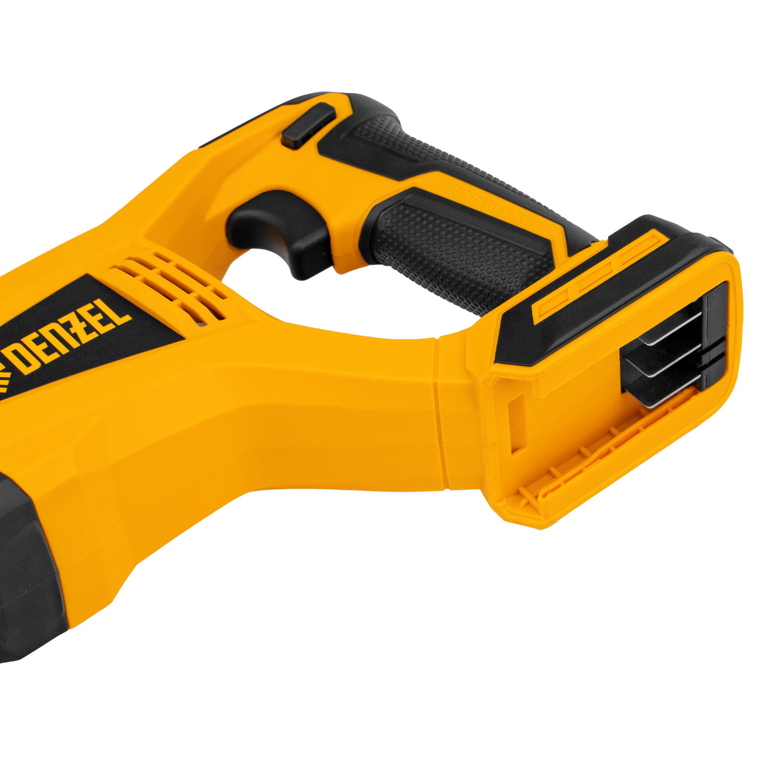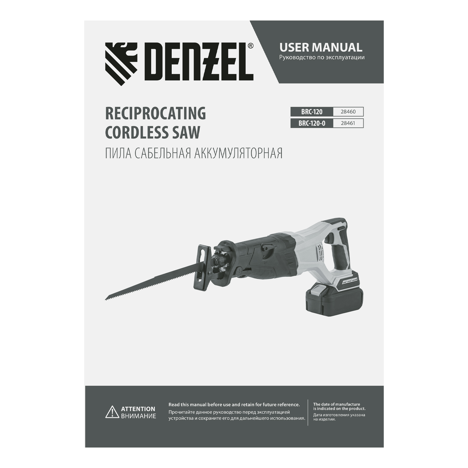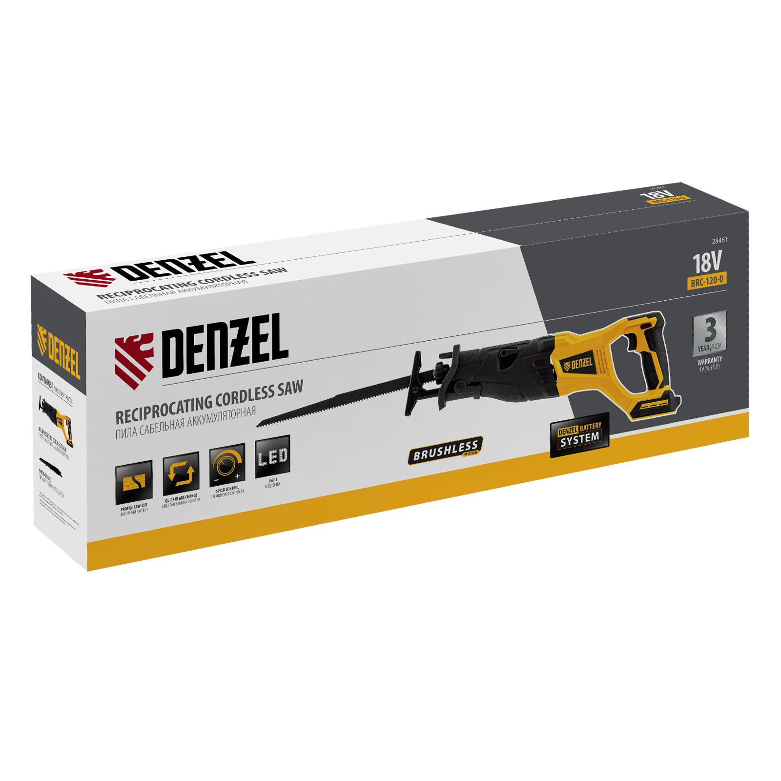 Сабельная аккумуляторная пила Denzel BRC-120-0 28461 с бесщеточным двигателем работает от аккумулятора Li-Ion с рабочим напряжением 18 В. Предназначена для распила фанеры, досок, ДСП, ДВП, пластика, а также для обрезки веток. Максимальная глубина пропила в древесине составляет 120 мм, в стали — 10 мм. Оснастка совершает до 3100 ходов в минуту, что обеспечивает эффективную работу. Пила поставляется без аккумулятора и зарядного устройства, к ней подходит универсальный аккумулятор емкостью 4 А/ч, совместимый с любым инструментом единой платформы Denzel battery system 18V серии IB.Преимущества Надежность — мощный бесщеточный двигатель обеспечивает высокую производительность, не требует обслуживания и отличается долговечностью. Регулировка частоты ходов — можно выбрать оптимальный режим в зависимости от твердости материала. Защита двигателя — в случае перегрузки пила выключается, что позволяет предотвратить поломку. Безопасность пользователя — производителем предусмотрена защита от случайного пуска. Автономность — инструмент не нуждается в подключении к розетке, что позволяет свободно перемещаться по рабочей зоне или дачному участку. Гарантия 3 года — высокое качество инструмента подтверждено производителем.