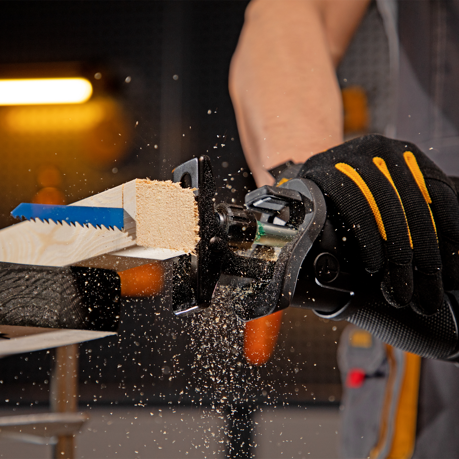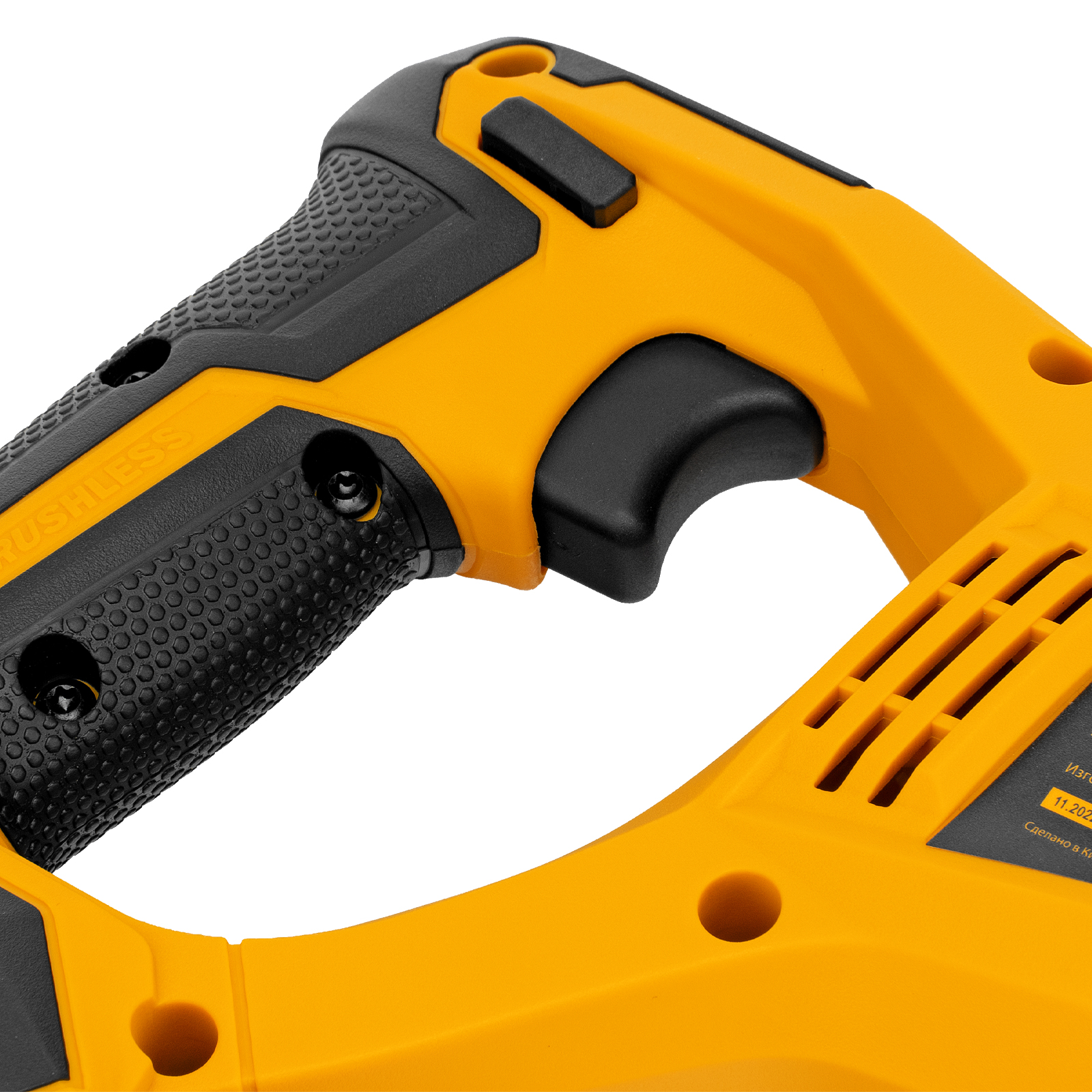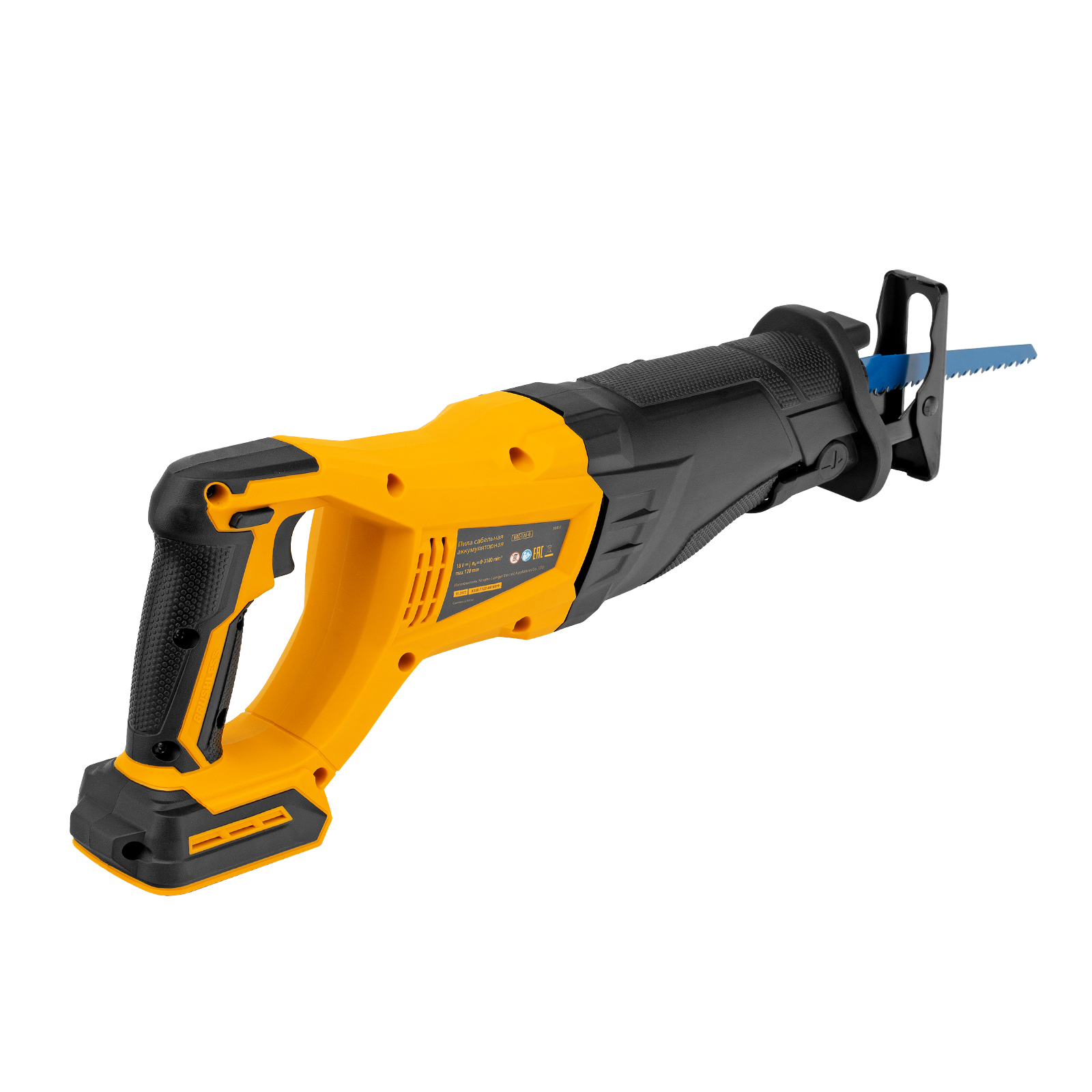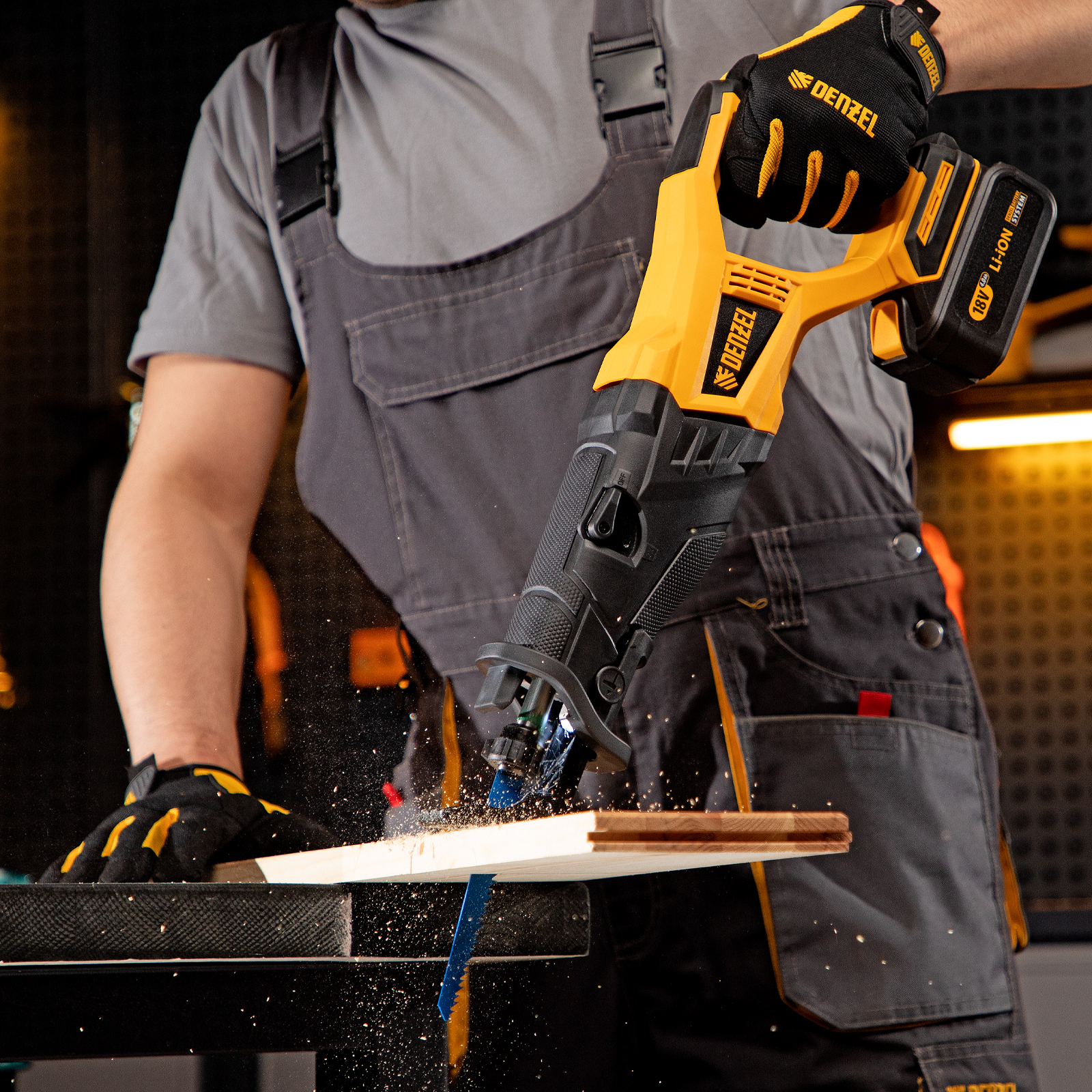 Сабельная аккумуляторная пила Denzel BRC-120-0 28461 с бесщеточным двигателем работает от аккумулятора Li-Ion с рабочим напряжением 18 В. Предназначена для распила фанеры, досок, ДСП, ДВП, пластика, а также для обрезки веток. Максимальная глубина пропила в древесине составляет 120 мм, в стали — 10 мм. Оснастка совершает до 3100 ходов в минуту, что обеспечивает эффективную работу. Пила поставляется без аккумулятора и зарядного устройства, к ней подходит универсальный аккумулятор емкостью 4 А/ч, совместимый с любым инструментом единой платформы Denzel battery system 18V серии IB.Преимущества Надежность — мощный бесщеточный двигатель обеспечивает высокую производительность, не требует обслуживания и отличается долговечностью. Регулировка частоты ходов — можно выбрать оптимальный режим в зависимости от твердости материала. Защита двигателя — в случае перегрузки пила выключается, что позволяет предотвратить поломку. Безопасность пользователя — производителем предусмотрена защита от случайного пуска. Автономность — инструмент не нуждается в подключении к розетке, что позволяет свободно перемещаться по рабочей зоне или дачному участку. Гарантия 3 года — высокое качество инструмента подтверждено производителем.