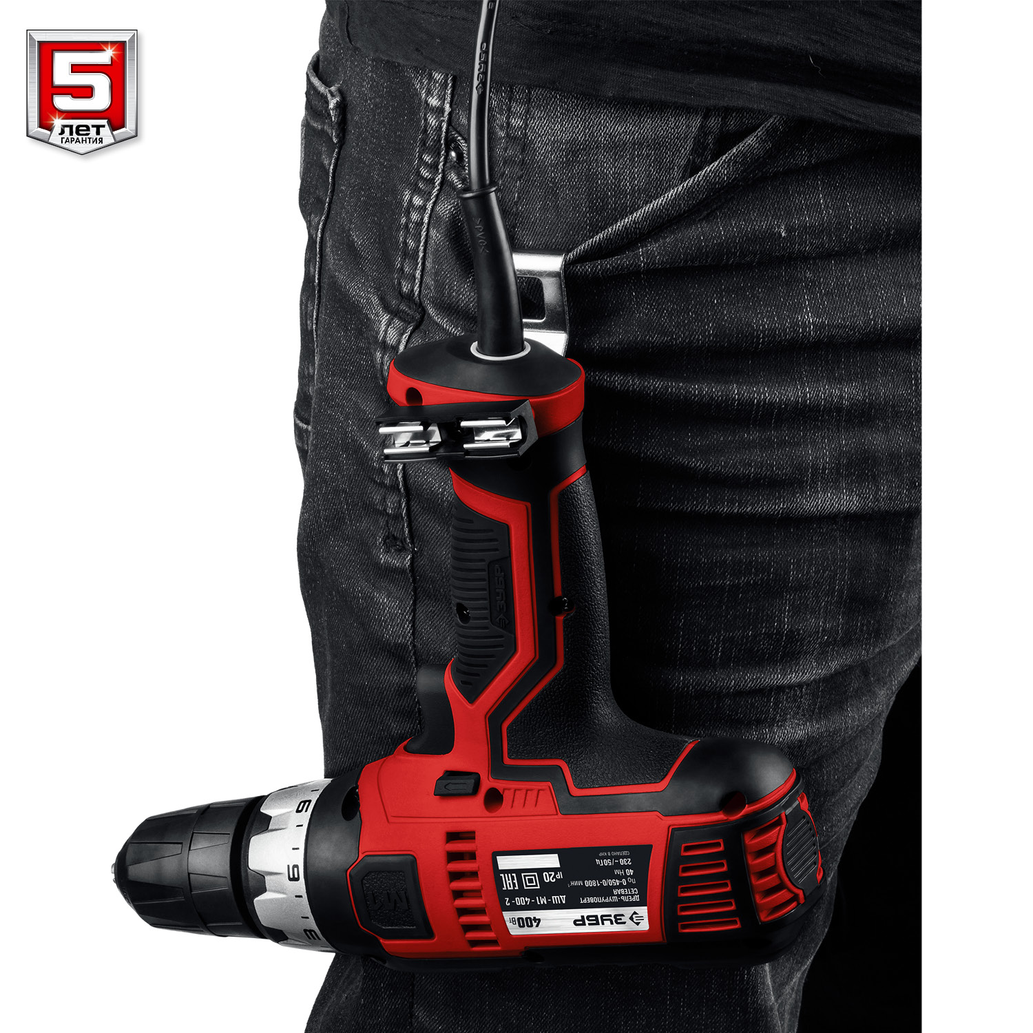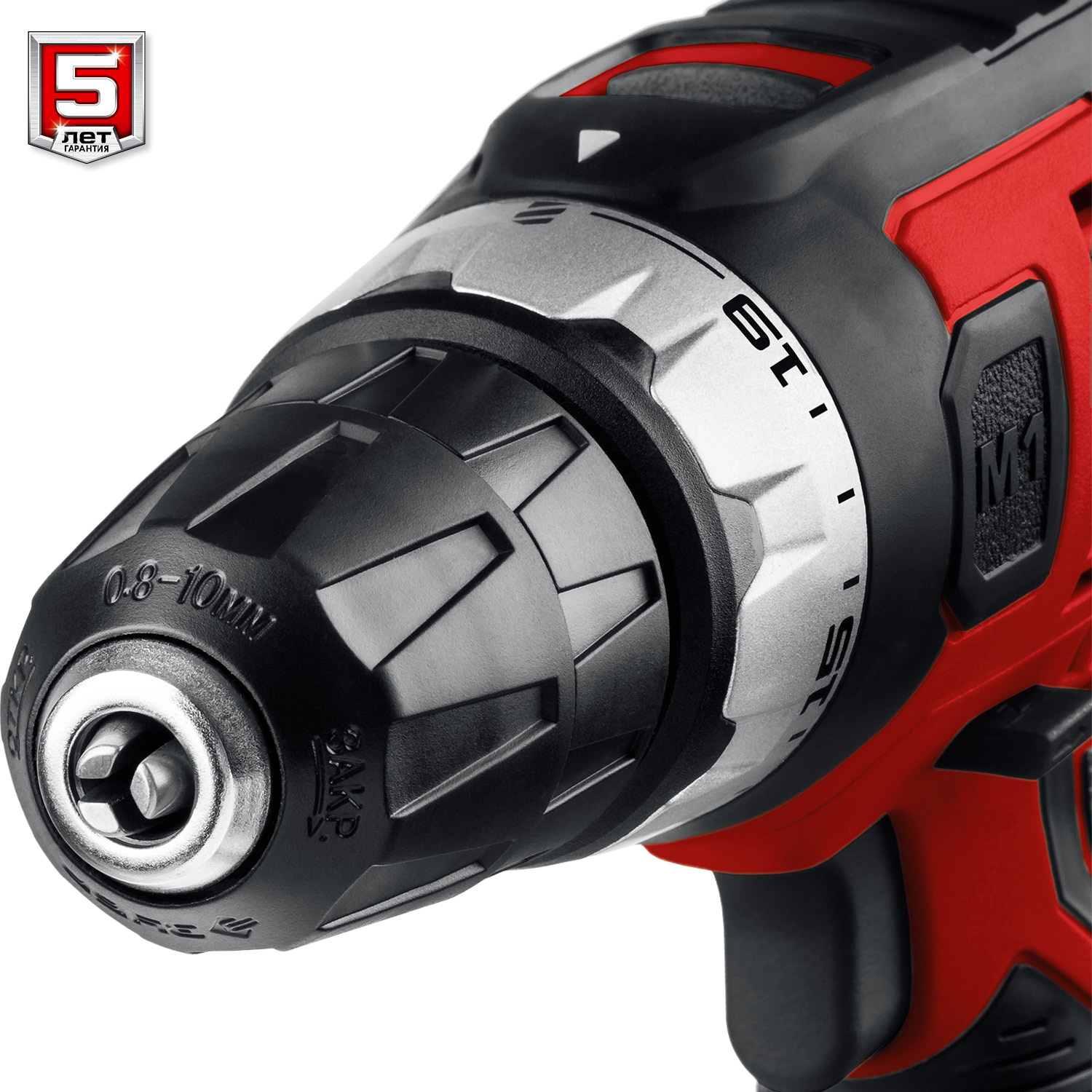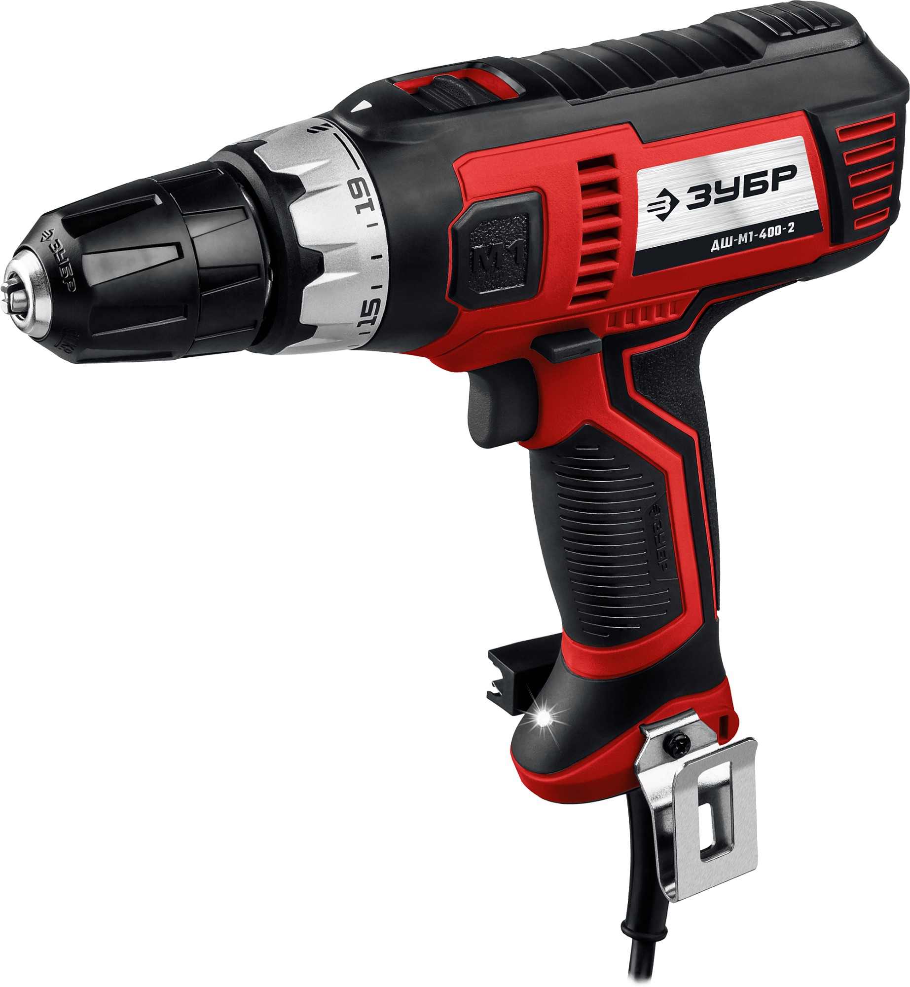 - Двухскоростной редуктор обеспечивает как большой момент для заворачивания крепежа, так и значительную частоту вращения для сверления