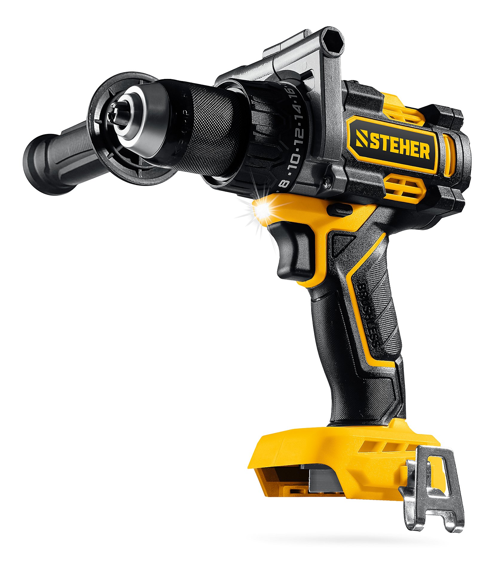 Бесщеточная дрель-шуруповерт STEHER системы LMS с максимальным крутящим моментом 165 Нм предназначена для работы с самым крупным крепежом (саморезы до 12 мм диаметром) и сверления отверстий до 40 мм в дереве. Встроенная защита от обратного удара предотвращает повреждение кисти при резкой блокировке вала