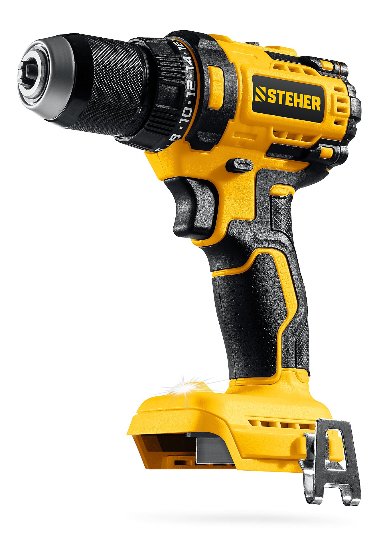 Бесщеточная дрель-шуруповерт STEHER системы LMS с увеличенным крутящим моментом предназначена для быстрого заворачивания саморезов до 8 мм диаметром и сверления отверстий до 30 мм в дереве. Длительная работа от одного заряда обеспечивается эффективным двигателем BRUSHLESS