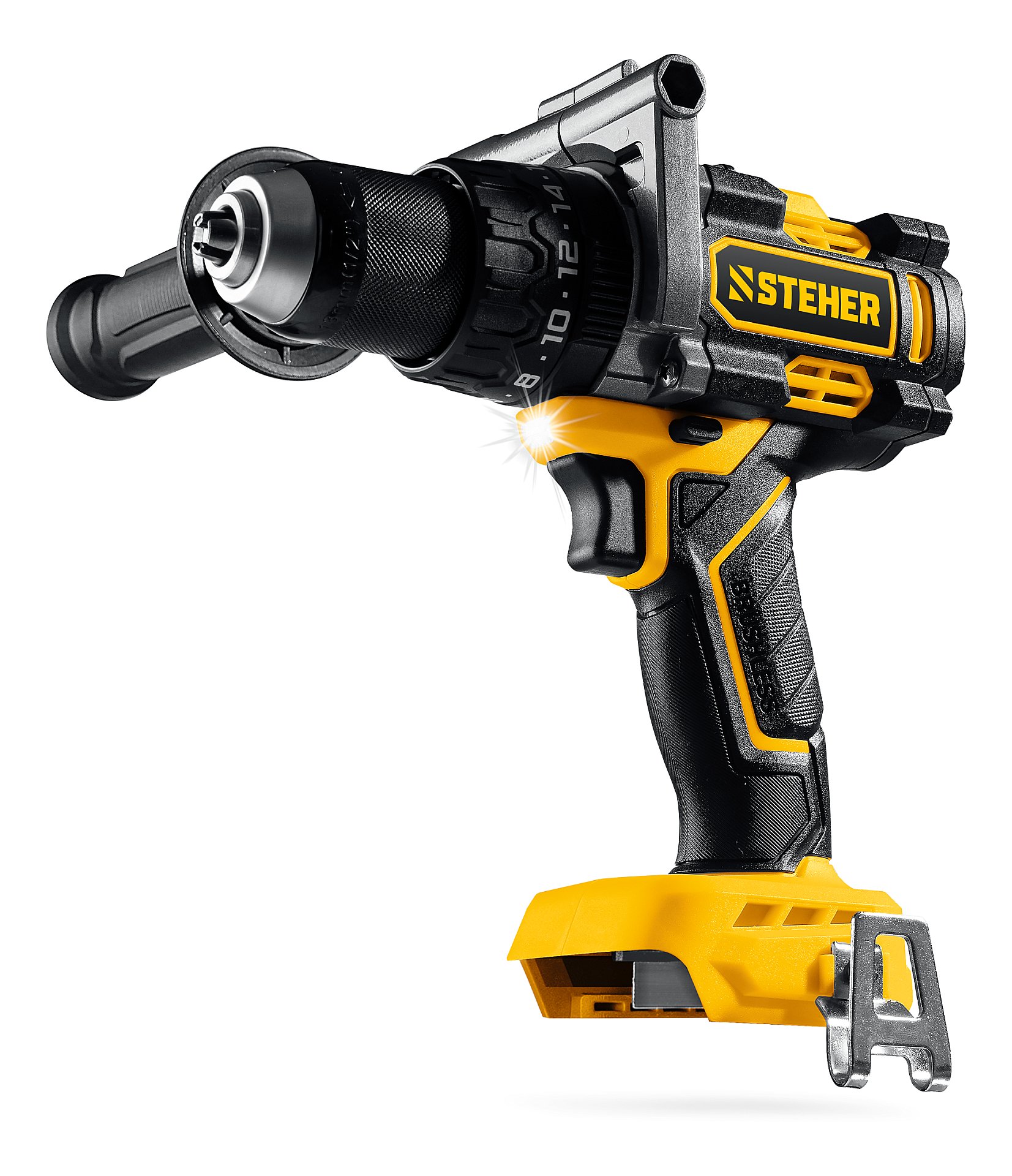 Бесщеточная ударная дрель-шуруповерт STEHER системы LMS с максимальным крутящим моментом 165 Нм предназначена для работы с самым крупным крепежом (саморезы до 12 мм диаметром) и сверления отверстий до 40 мм в дереве. Встроенная защита от обратного удара предотвращает повреждение кисти при резкой блокировке вала. Расширенная функциональность за счет ударного режима работы