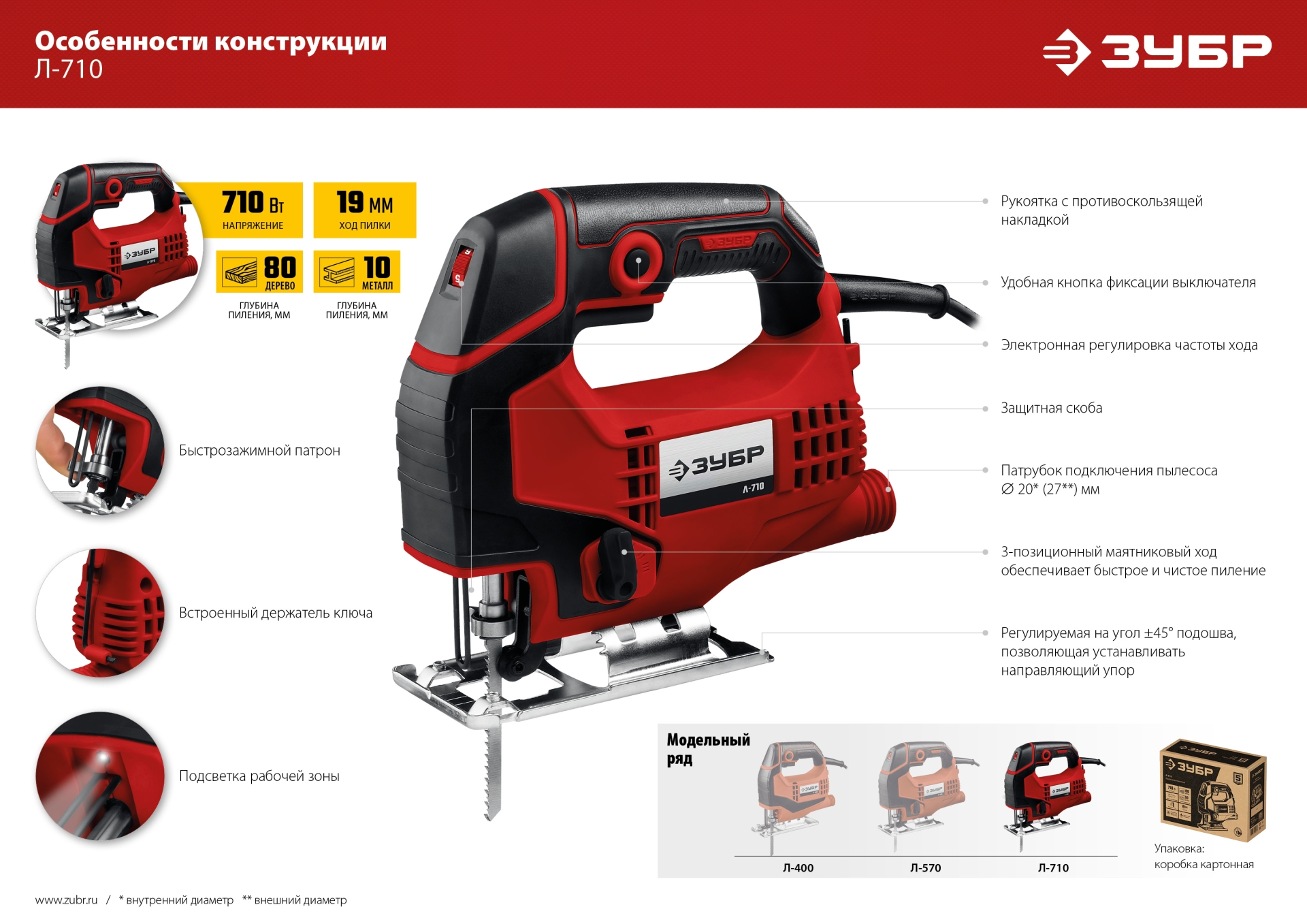 - Встроенная подсветка рабочего места для лучшего обзора линии реза