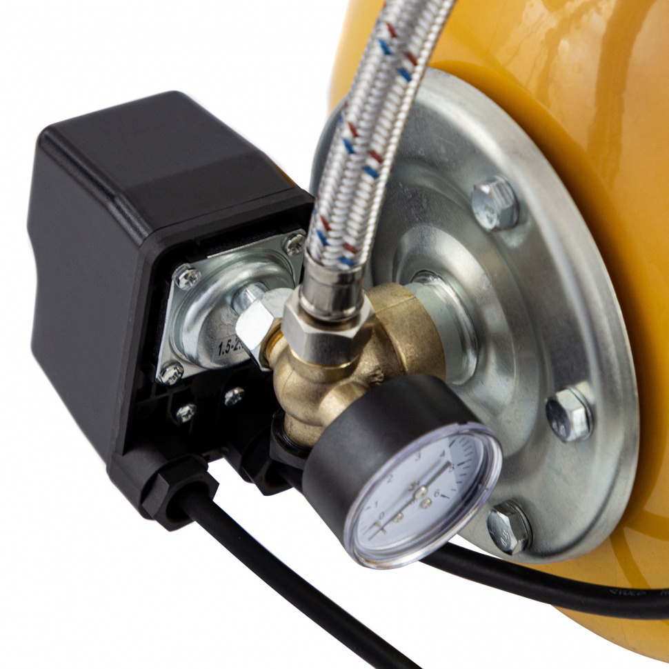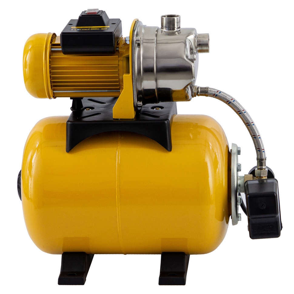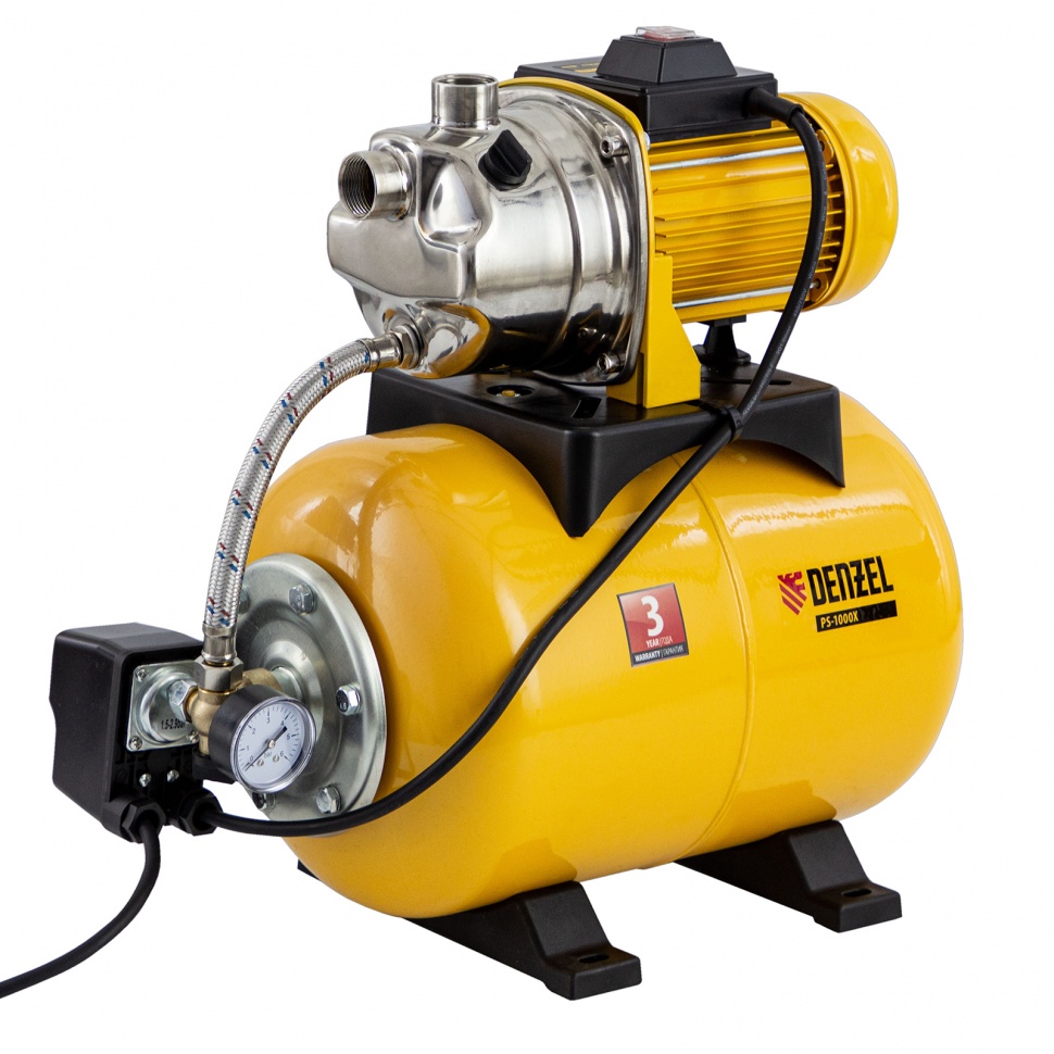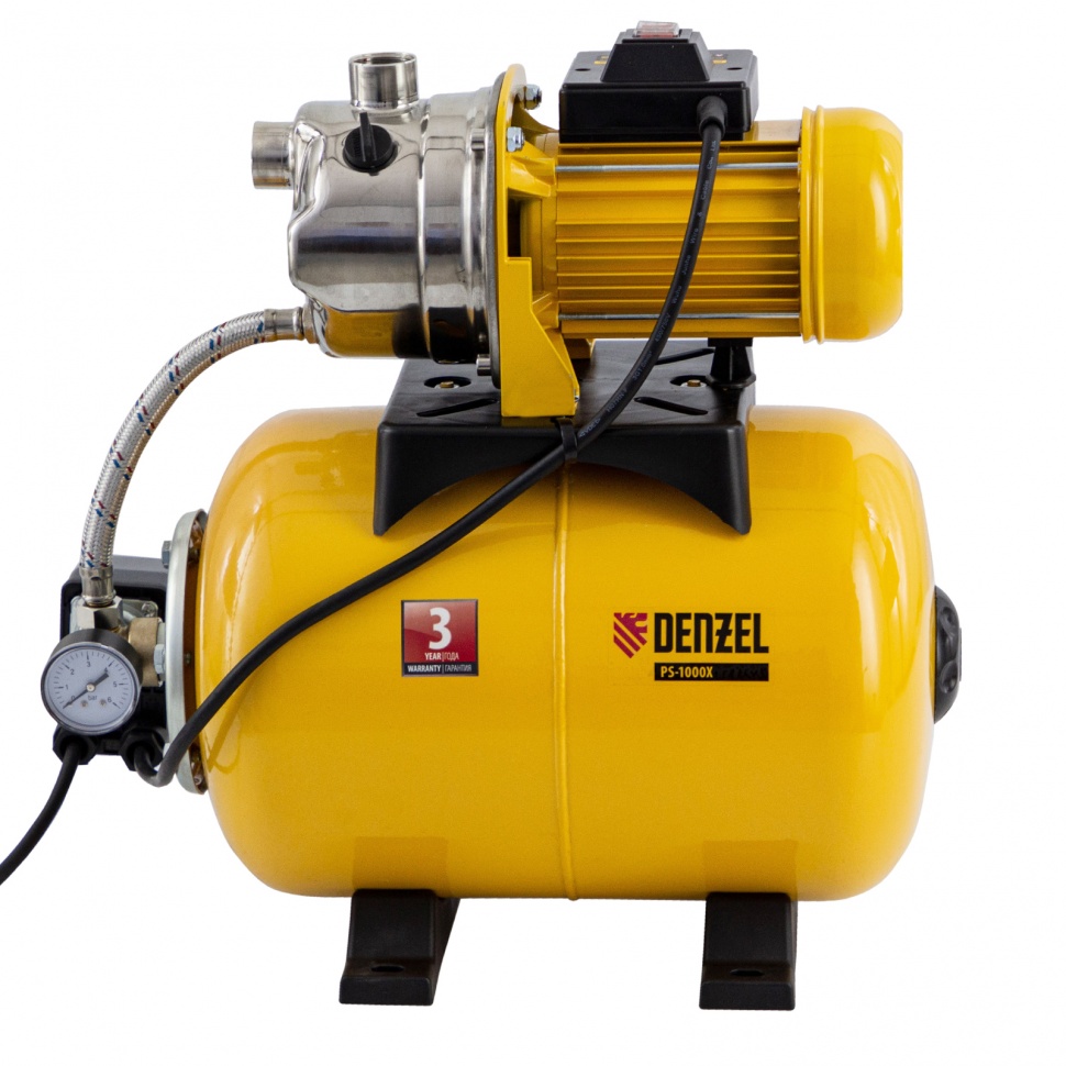 Насосная станция Denzel PS1000X 97211 мощностью 1000 Вт выполнена из нержавейки, оснащена ресивером на 24 л, обеспечивает производительность до 3500 л/ч и подъем воды до 44 м. Рассчитана на бытовое использование в загородных домах, квартирах и на дачах. Мощности 1 кВт вполне хватит для подключения устройства к оросительным системам, перекачивания воды в частный дом, обеспечения отопительных нужд и т.д. Станция не требует постоянного контроля со стороны пользователя, поскольку работает в автоматическом режиме. Благодаря ресиверу на 24 л в случае отключения электричества в доме всегда будет запас воды на нужды первой необходимости.ПреимуществаЗащита от перегрева — электродвигатель отключается при превышении допустимой температуры, это позволяет продлить его ресурс и избежать поломку.Степень защиты IPX4 — насосной части не страшно попадание брызг воды, пыли и инертных частиц размером более 1 мм.Надежный корпус — использование высокопрочной конструкционной стали препятствует износу изделия и позволяет увеличить гарантийный срок до 3 лет.Нержавеющая насосная часть — даже через несколько лет внутренние части станции не покроются ржавчиной, это очень важно при работе с водой.Удобный визуальный контроль — манометр позволяет отслеживать давление воды на выходе и экономит бюджет на покупку дополнительных измерителей.Автоматизация работы — реле контролирует работу насоса в диапазоне 1,5–3 бар, отключая двигатель при превышении и запуская при понижении давления, это обеспечивает сохранность системы и экономное энергопотребление.Защита от поломок — пневмоклапан позволяет контролировать объем закаченного воздуха в гидроаккумулятор и сбрасывать его при избыточном давлении, предотвращая аварийные ситуации.Простое управление — выключатель-тумблер делает процесс запуска и остановки легким и позволяет быстро адаптироваться даже неопытным пользователям.Прозрачный кожух — выключатель надежно закрыт от попадания пыли и влаги, это обеспечивает дополнительную защиту внутреннего узла.Высокая производительность — ресивер накапливает воду, снижая количество включений мотора и экономит его ресурс.Внутренняя мембрана из пищевой резины — допускается применение перекачиваемой воды для питья.Стойки с болтовым креплением — станция поставляется уже собранной, ее нужно только зафиксировать на горизонтальной поверхности, что позволяет снизить уровень вибраций.Гарантия 3 года — высокое качество насосной станции подтверждено производителем.
