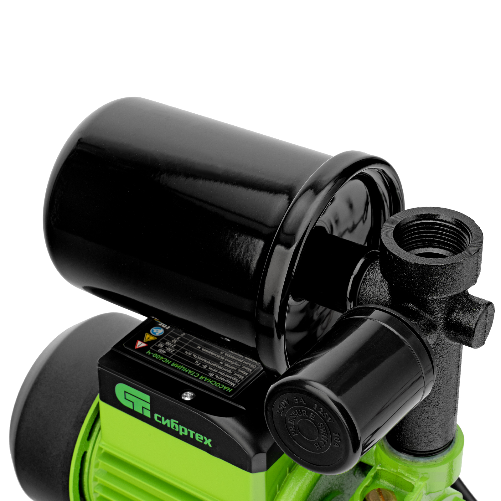 Насосная станция Сибртех НС400-Ч 97246 мощностью 400 Вт, с ресивером на 2 л, обеспечивает напор до 32 м и производительность до 2100 л/ч. Предназначена для бесперебойной подачи чистой воды с глубины до 7 м, позволяет организовать водоснабжение на дачном участке. Насосная станция поддерживает стабильное давление в напорной магистрали и оптимальна для создания системы полива.ПреимуществаНадежность — асинхронный двигатель обеспечивает стабильную работу станции на протяжении всего срока эксплуатации.Долговечность — чугунный корпус защищает насосную часть от повреждений, рабочее колесо из латуни устойчиво к образованию коррозии.Автономная работа — насос автоматически включается и отключается в зависимости от давления в системе.Простая эксплуатация — станция не требует сложного обслуживания.Масса 6 кг — насосную станцию удобно перемещать к месту установки или хранения.