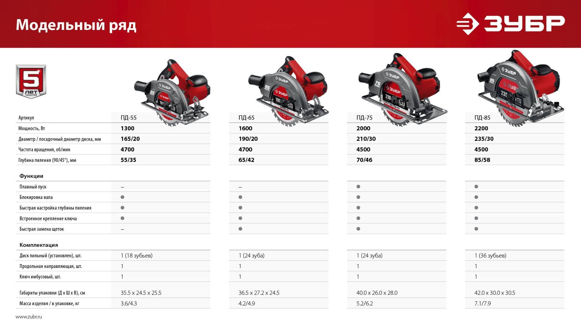 - Бесступенчатая регулировка глубины и угла пиления для точных работ