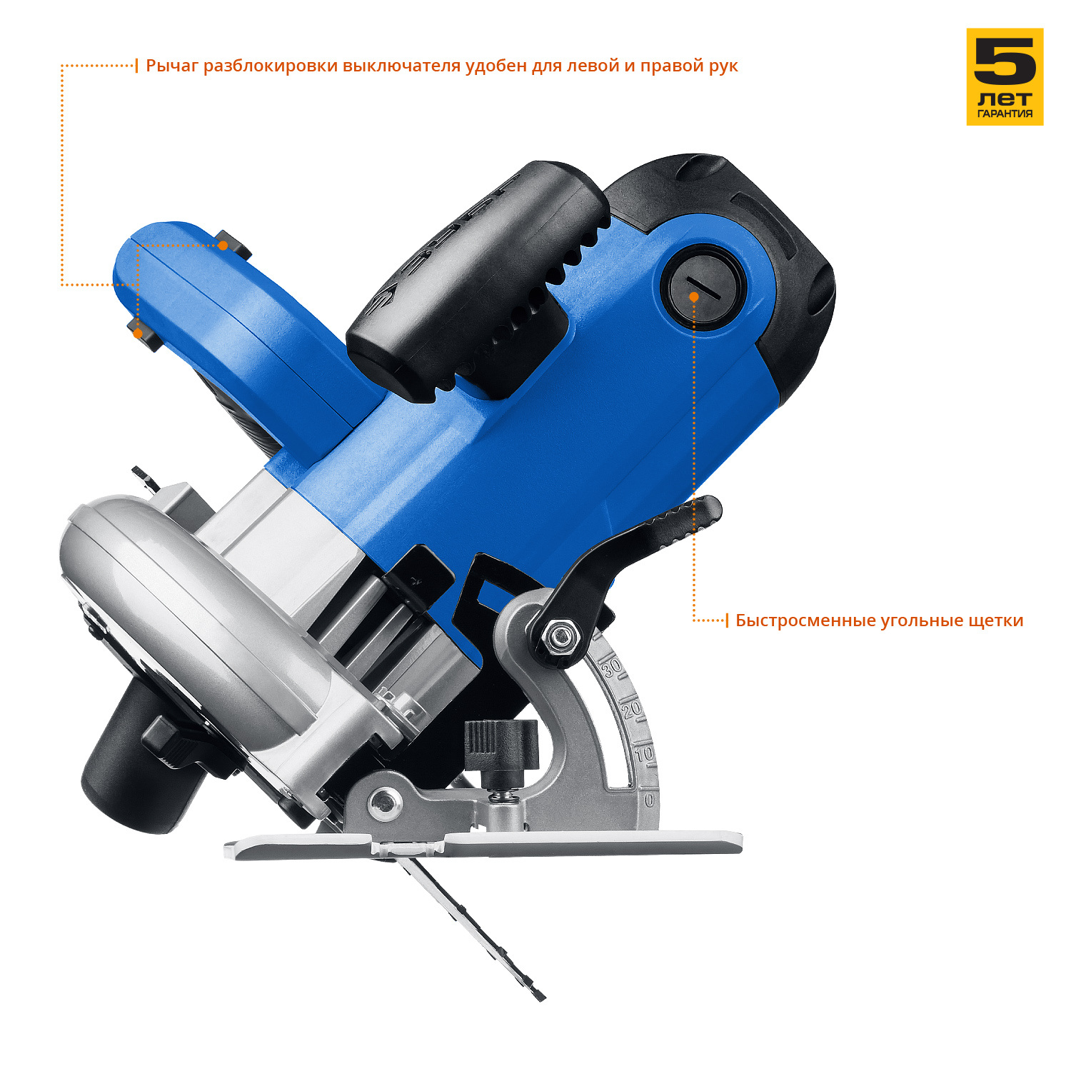 - Бесступенчатая регулировка глубины и угла пиления с удобными шкалами для точных работ
