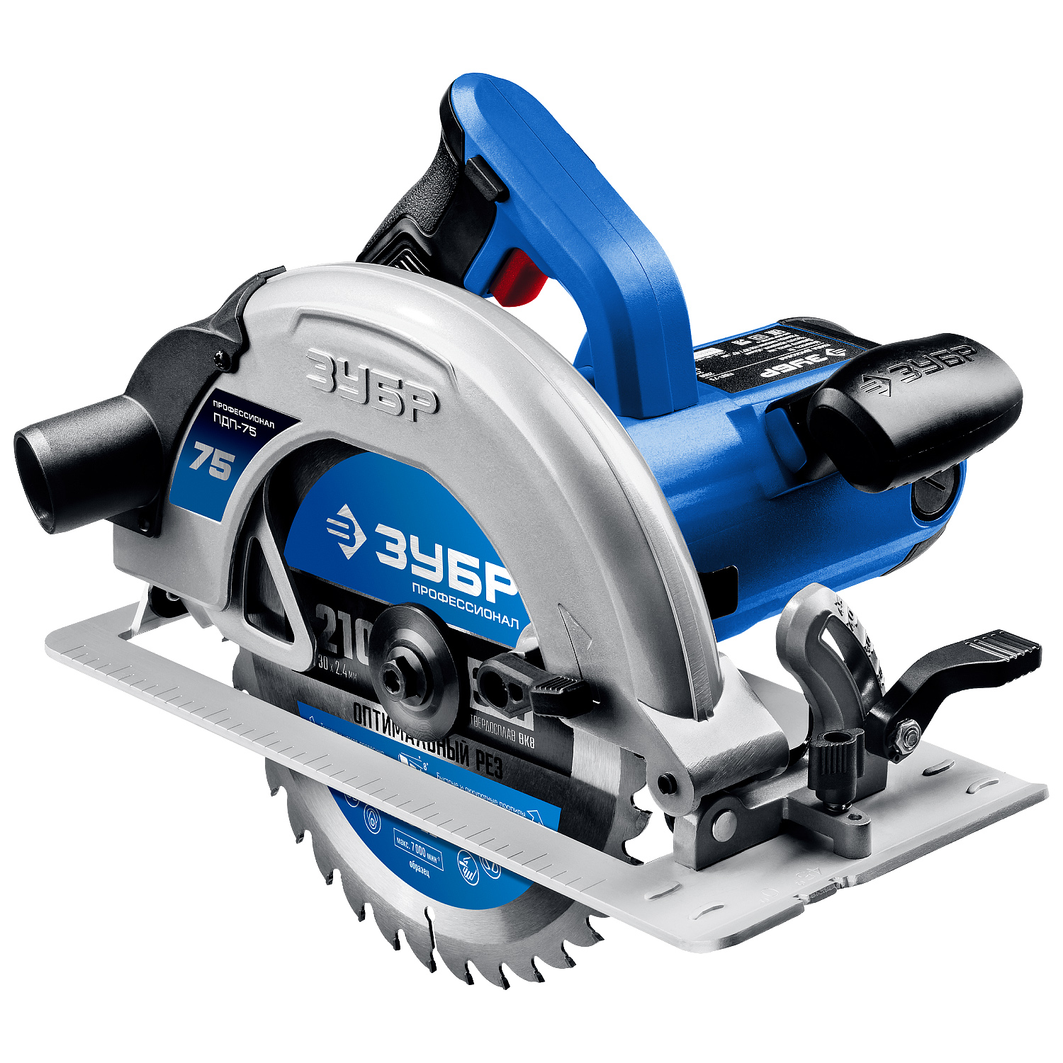 Циркулярная пила для всех видов распиловочных работ в серии профессионального инструмента ЗУБР. Максимальная глубина пиления 75 мм позволяет пилить все виды фанеры, любые листовые материалы, а также большинство типоразмеров досок и некоторые виды брусков. Жесткая конструкции обеспечивает точность пиления, плавный пуск устраняет начальный рывок, а удобные рычаги фиксации выбранных настроек и оптимальная эргономика рукояток помогают работать быстрее и комфортнее