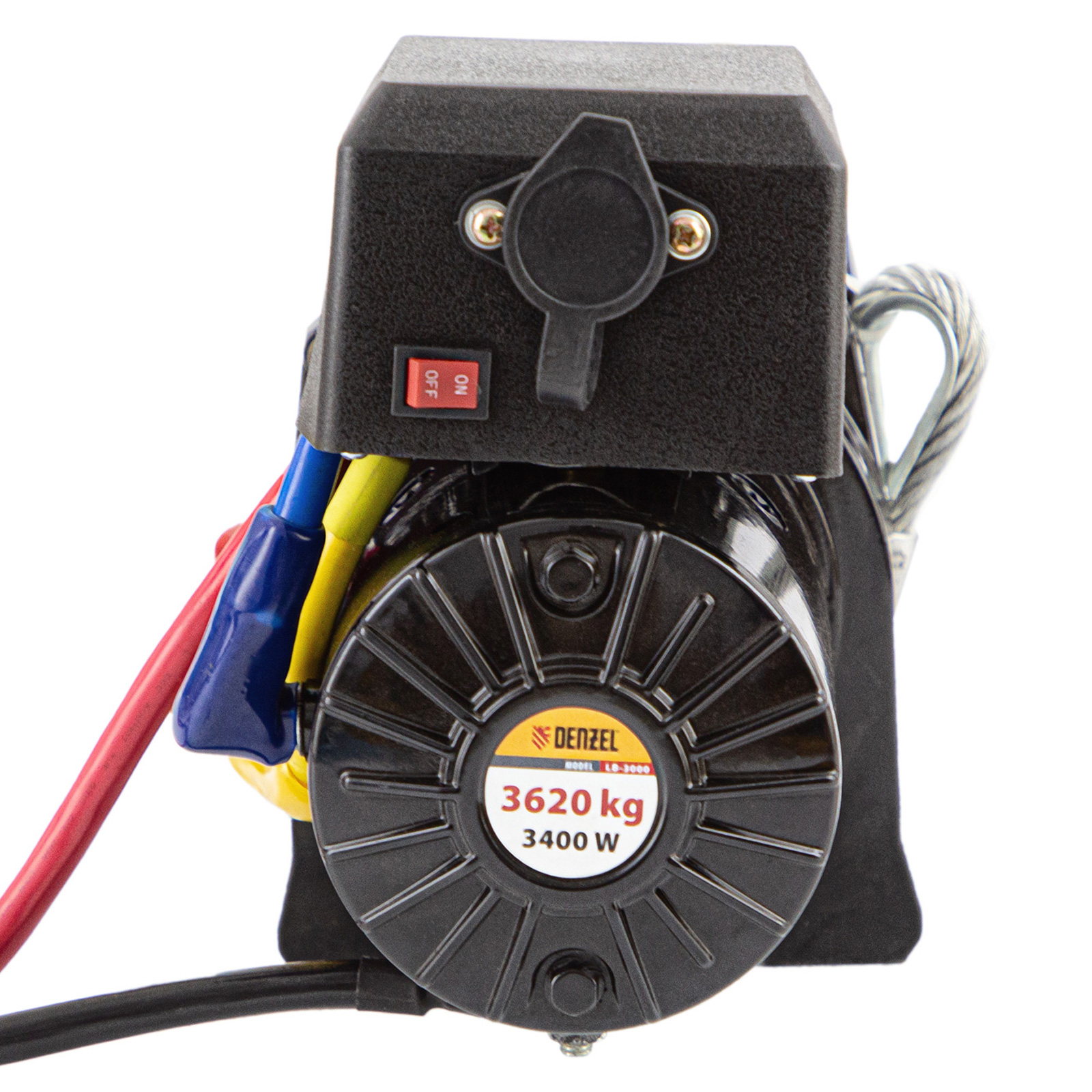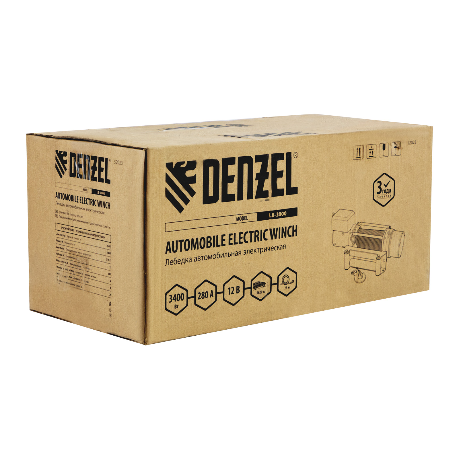 Лебедка Denzel LB-3000 52023 мощностью 3,4 кВт и скоростью намотки троса 1,9 м/мин используется для перемещения грузов в горизонтальной плоскости, а также эвакуации и вытягивания из водоемов и кюветов транспортных средств весом до 3,6 т, например, квадроциклов, легких внедорожников, сельхозтехники. Лебедка устанавливается непосредственно на бампере, раме или кузове, проста в применении и не требует специальной подготовки.ПреимуществаБезопасная эксплуатация — тормозной механизм не допускает самопроизвольного разматывания троса.Крепкое сцепление — зацепной крюк с защитной скобой надежно фиксирует груз без риска его соскальзывания.Удобное управление на расстоянии — в комплект поставки входит выносной пульт с кабелем, устойчивым к излому.Прочность — стальной трос диаметром 8 мм отличается малым коэффициентом растяжения, а благодаря плотному плетению не рвется под нагрузкой.Высокий ресурс — долгий срок службы устройства обеспечивают надежные комплектующие и высокое качество сборки.Увеличенная рабочая зона — длина троса 29 м позволяет работать на большом расстоянии.Простая подготовка к работе — лебедка подключается к прикуривателю 12 В или напрямую к аккумулятору автомобиля.Удобная транспортировка — на корпусе предусмотрена жесткая ручка.Гарантия 3 года — качество лебедки подтверждено производителем.