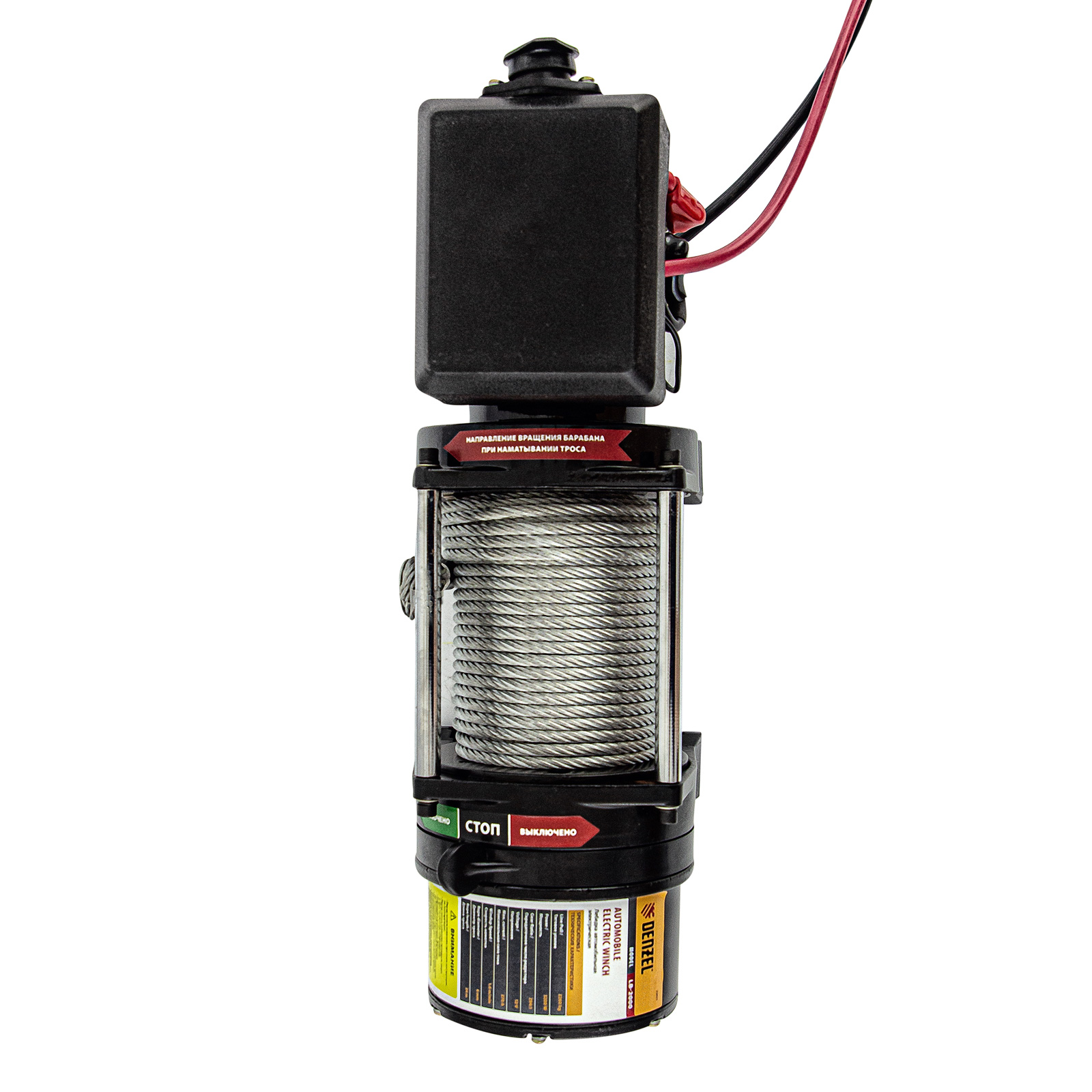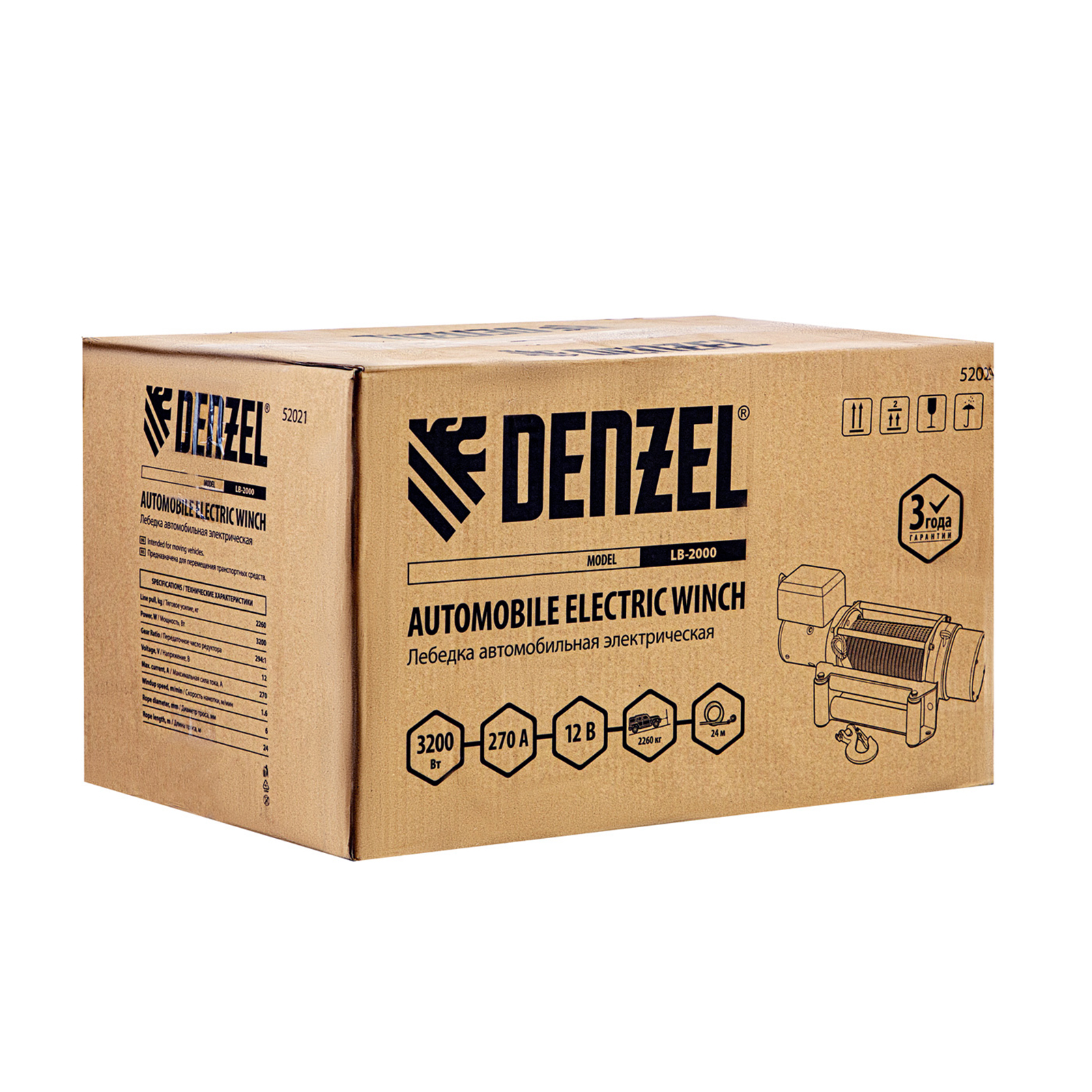 Лебедка Denzel LB-2000 52021 мощностью 3,2 кВт и скоростью намотки троса 1,6 м/мин используется для перемещения грузов в горизонтальной плоскости, а также эвакуации и вытягивания из водоемов и кюветов транспортных средств весом до 2,2 т, например, квадроциклов, легких внедорожников, сельхозтехники. Лебедка устанавливается непосредственно на бампере, раме или кузове, проста в применении и не требует специальной подготовки.ПреимуществаБезопасная эксплуатация — тормозной механизм не допускает самопроизвольного разматывания троса.Крепкое сцепление — зацепной крюк с защитной скобой надежно фиксирует груз без риска его соскальзывания.Удобное управление на расстоянии — в комплект поставки входит выносной пульт с кабелем, устойчивым к излому.Прочность — стальной трос диаметром 6,1 мм отличается малым коэффициентом растяжения, а благодаря плотному плетению не рвется под нагрузкой.Высокий ресурс — долгий срок службы устройства обеспечивают надежные комплектующие и высокое качество сборки.Увеличенная рабочая зона — длина троса 24 м позволяет работать на большом расстоянии.Простая подготовка к работе — лебедка подключается к прикуривателю 12 В или напрямую к аккумулятору автомобиля.Удобная транспортировка — на корпусе предусмотрена жесткая ручка.Гарантия 3 года — качество лебедки подтверждено производителем.