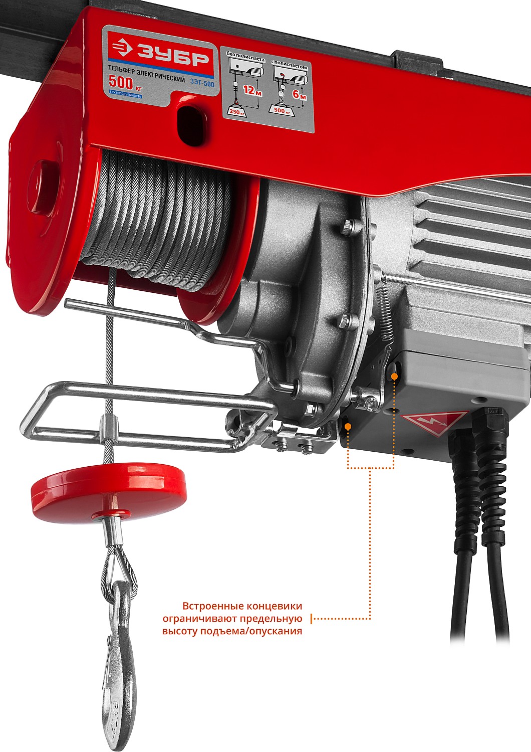 - Возможна работа в режиме с полиспастом. В этом режиме подъемный вес увеличивается в два раза