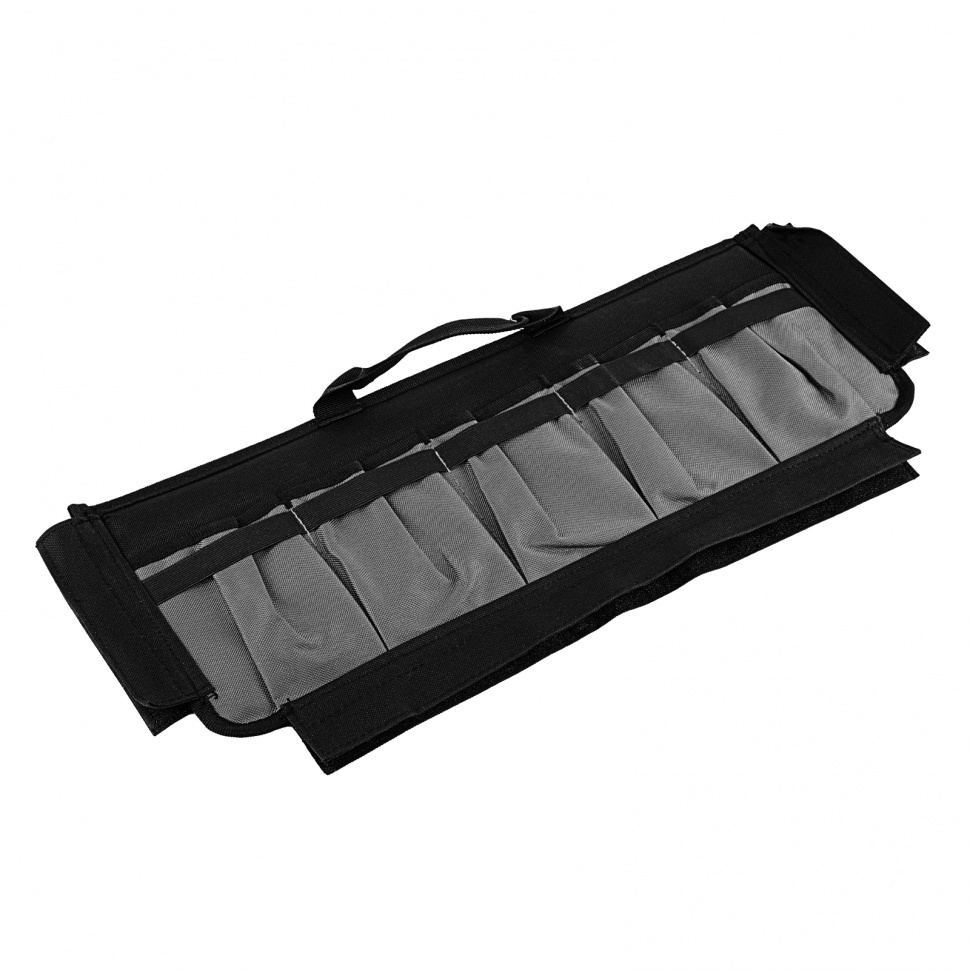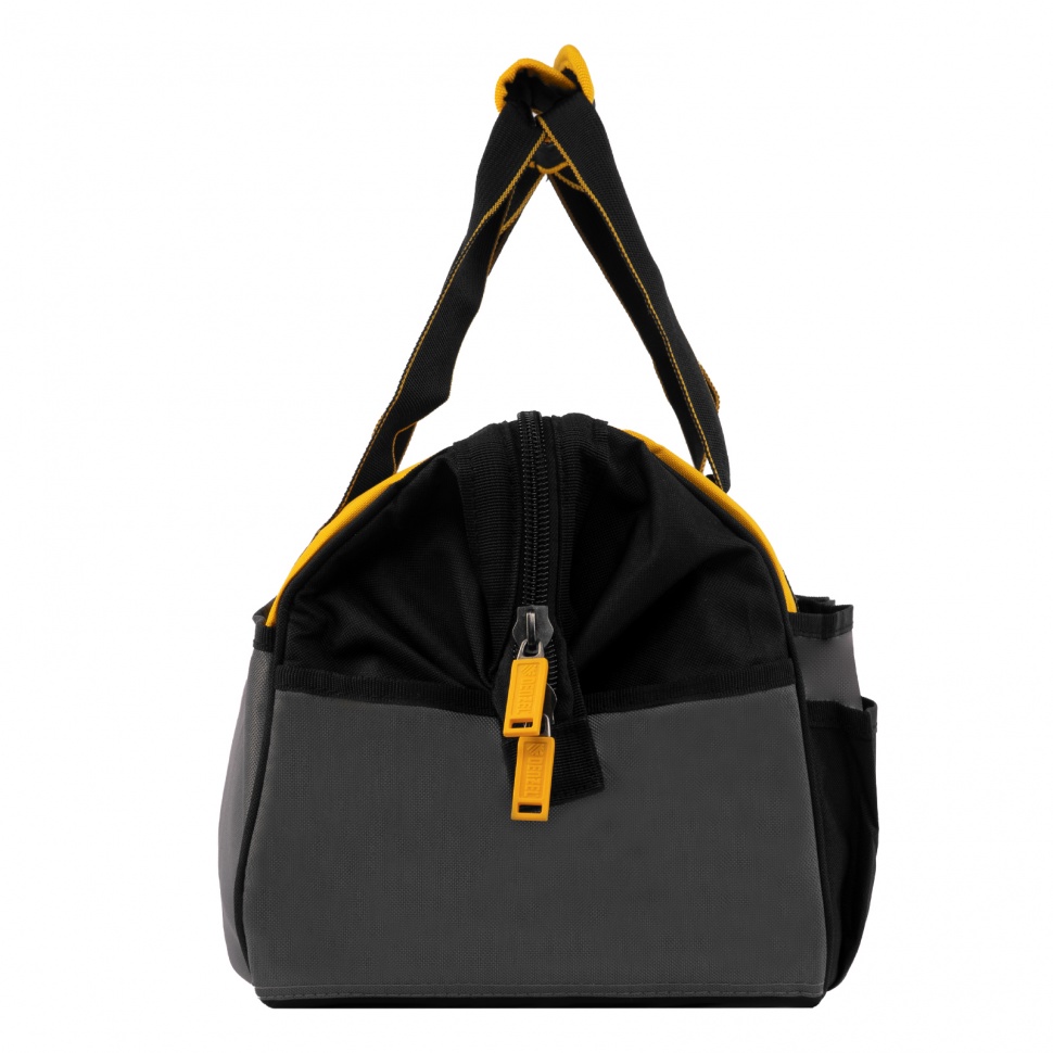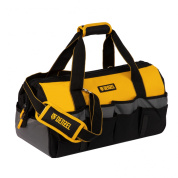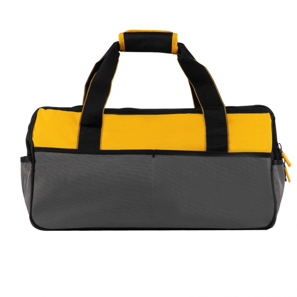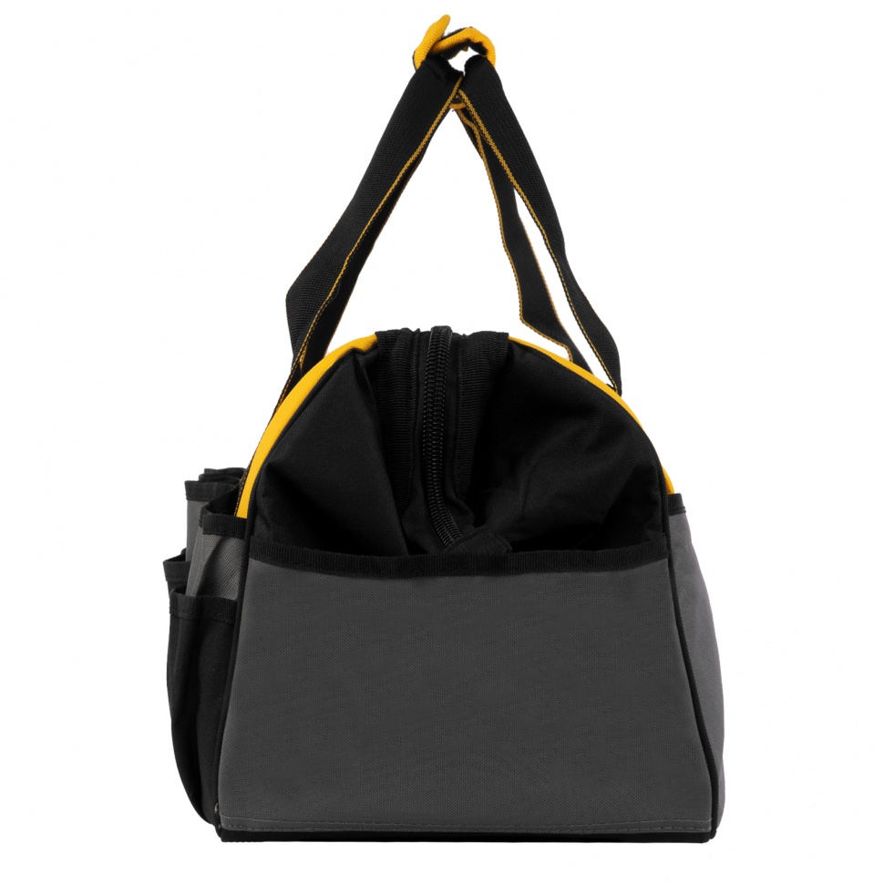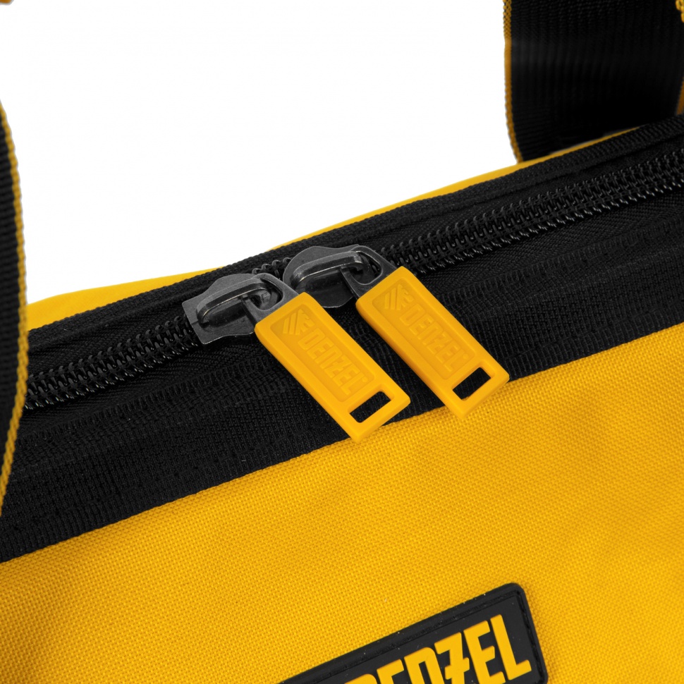 Сумка Denzel 90293 габаритами 500 х 245 х 300 мм с 20 карманами (в том числе съемным органайзером на 10 карманов) и наплечным ремнем, вмещает большое количество инструментов и используется для их хранения и транспортировки. Пригодится монтажнику, сантехнику, мастеру на выезде и автовладельцу.ПреимуществаИзносостойкость — сумка изготовлена из прочного материала, не рвется и не протирается.Съемный органайзер — можно упорядочить хранение крепежей, мелких деталей и аксессуаров.Комфортная транспортировка — сумку удобно носить не только в руке, но и на плече — ремень с усиленными карабинами выдерживает большой вес.