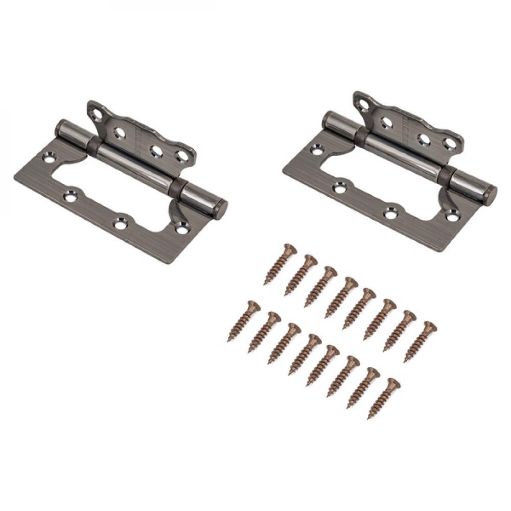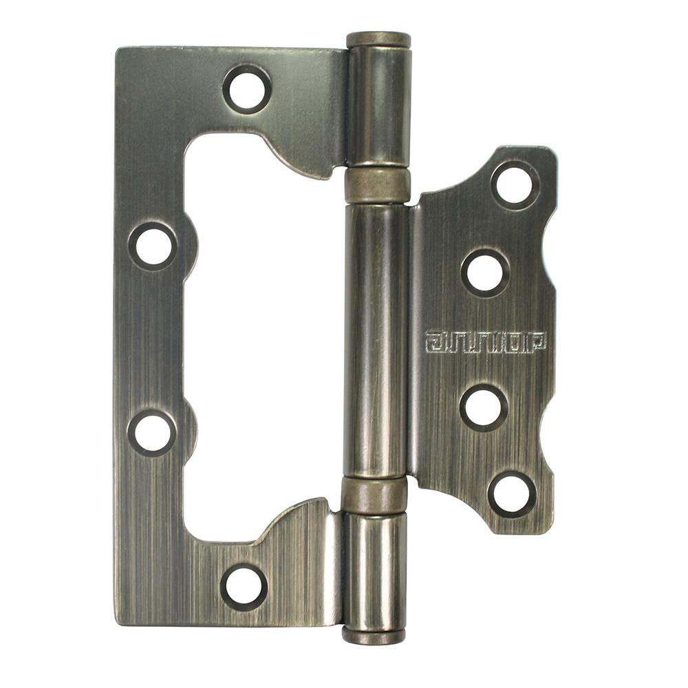 Петля дверная универсальная, без врезки. Предназначена для установки на левые и правые двери. Материал - сталь, гальваническое покрытие. Размер петли - 100х75х2,5 мм. 2 подшипника, плоский колпачок.