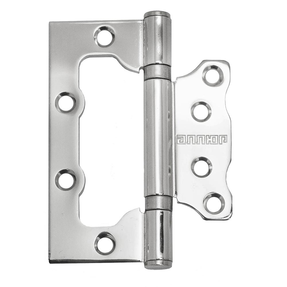 Петля дверная универсальная, без врезки. Предназначена для установки на левые и правые двери. Материал - сталь, гальваническое покрытие. Размер петли - 100х75х2,5 мм. 2 подшипника, плоский колпачок.