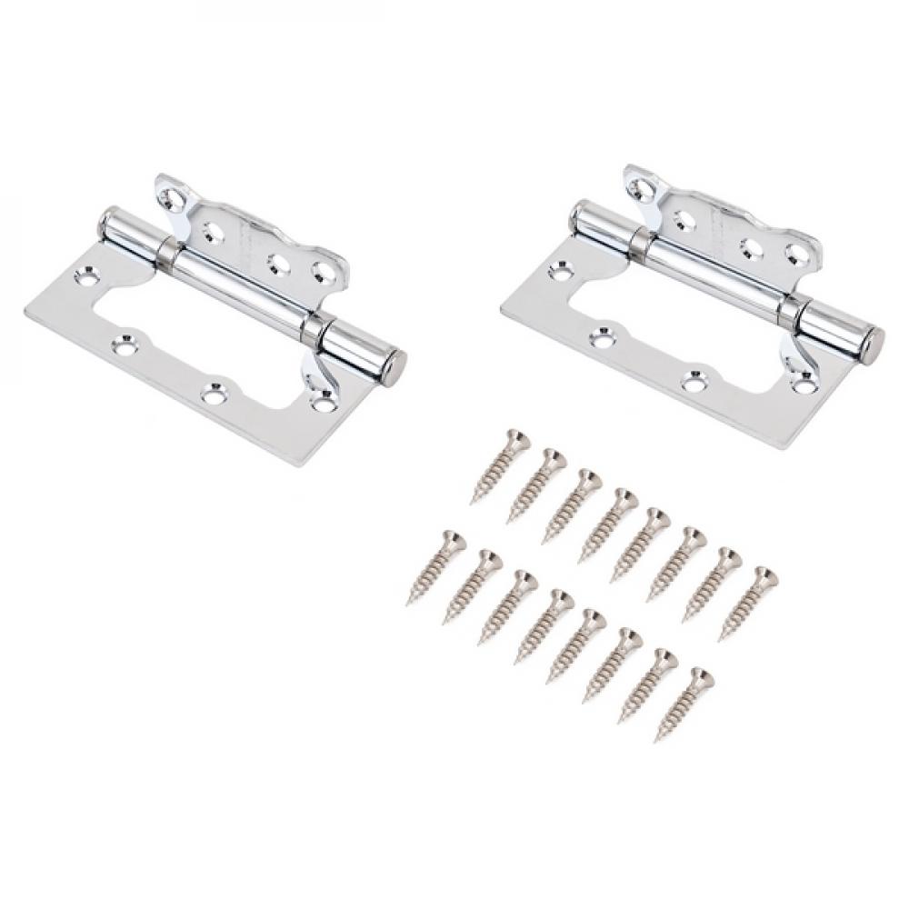 Петля дверная универсальная, без врезки. Предназначена для установки на левые и правые двери. Материал - сталь, гальваническое покрытие. Размер петли - 100х75х2,5 мм. 2 подшипника, плоский колпачок.