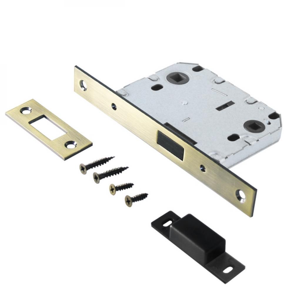 Универсальная магнитная защёлка врезная для установки на деревянные межкомнатные двери. Материал - сталь, магнит, гальваническое покрытие.Под ручку с квадратом 8 мм и сантехническую завертку с квадратом 6 мм. Удаление ключевого отверстия - 50 мм. Межосевое расстояние - 70 мм. Прямоугольная торцевая планка. Ширина планки - 20мм. Габариты корпуса - 97х75х12 мм. В комплекте - защелка, саморезы, ответная планка.