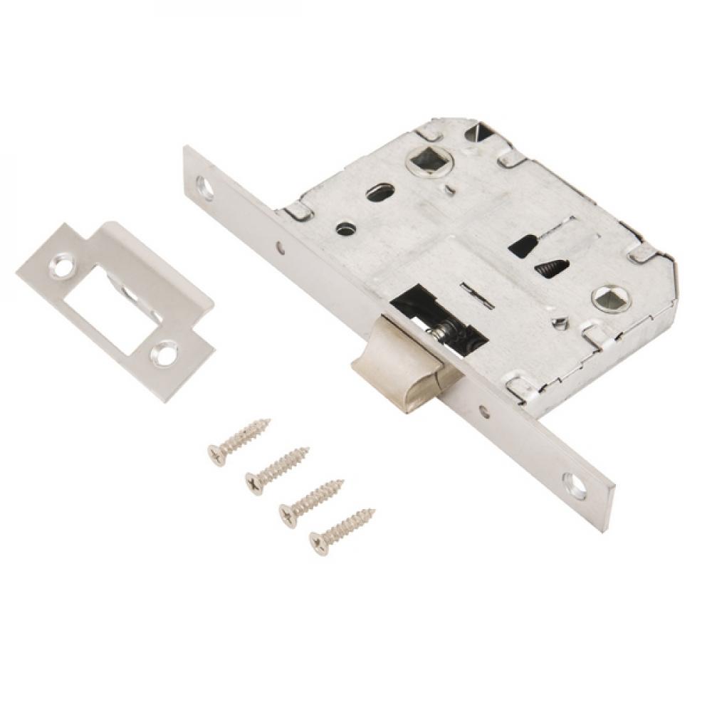 Универсальная защёлка врезная для установки на деревянные межкомнатные двери. Материал - сталь, гальваническое покрытие.Под ручку с квадратом 8 мм и сантехническую завертку с квадратом 6 мм. Удаление ключевого отверстия - 50 мм. Межосевое расстояние - 70 мм. Прямоугольная торцевая планка. Ширина планки - 18мм. Габариты корпуса - 74х96х12 мм. В комплекте - защелка, саморезы, ответная планка и белый пластиковый вкладыш к ней.