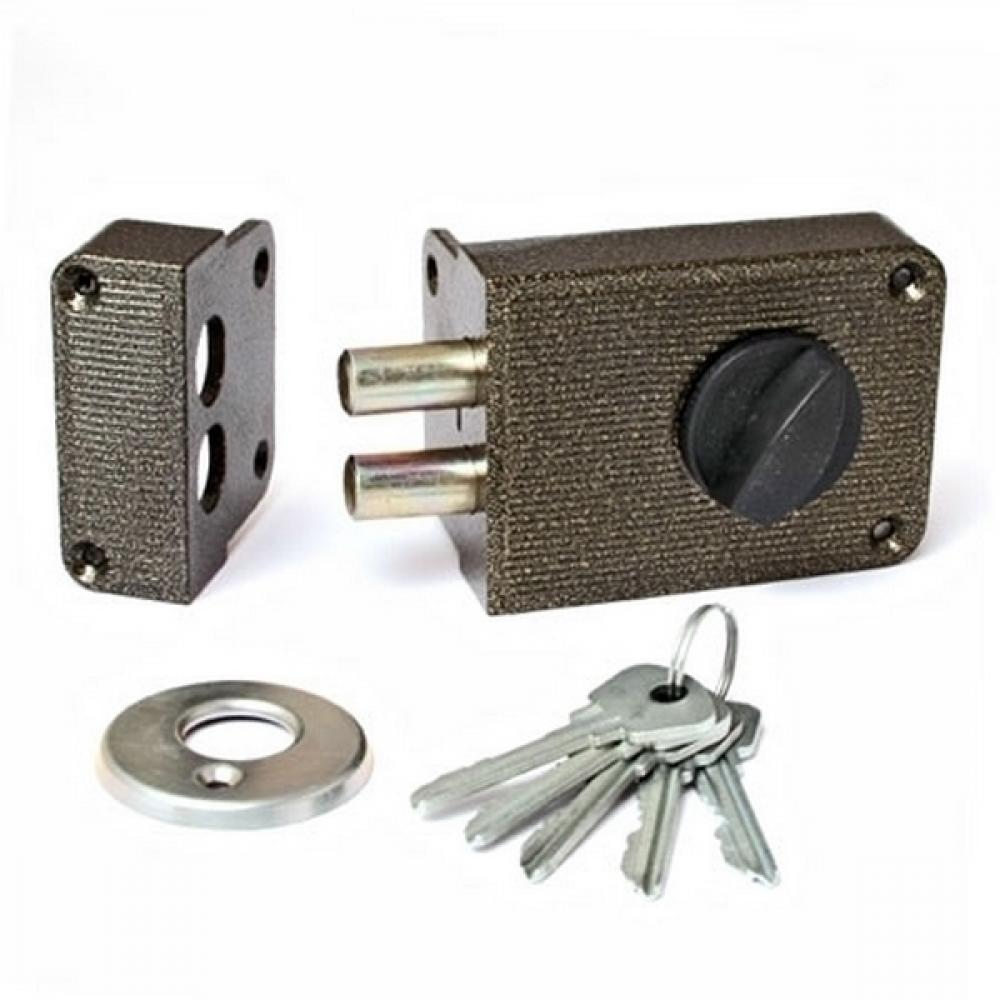 Замок накладной ЗН 1-3 предназначен для деревянных и металлических дверей. Корпус замка выполнен из цинкового сплава, ригели из стали. Имеется блокировка открывания двери ключом снаружи. Изнутри замок запирается ручкой. 2 класс секрета. Количество секретных комбинаций: 15 000. Два ригеля диаметром 14 мм. Цвет: бронза. Комплектация: замок, цилиндровый механизм МЦ-1, 4 английских ключа, ответная планка, 1 накладка, крепежная фурнитура.
