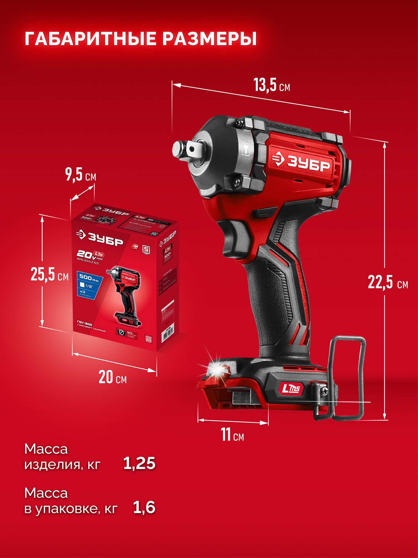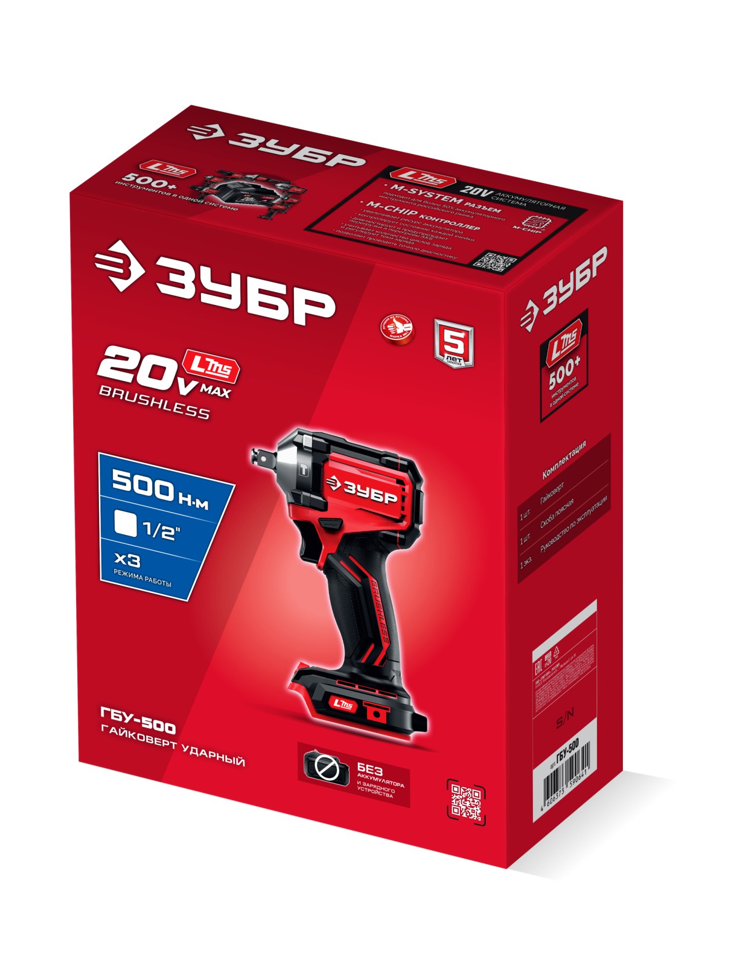 Бесщеточный ударный гайковерт ЗУБР системы LMS с максимальным крутящим моментом 500 Нм предназначен для фиксации резьбовых соединений размером до М22. Ударная функция с тангенциальным направлением удара обеспечивает эффективное заворачивание без реактивного момента на кисть оператора