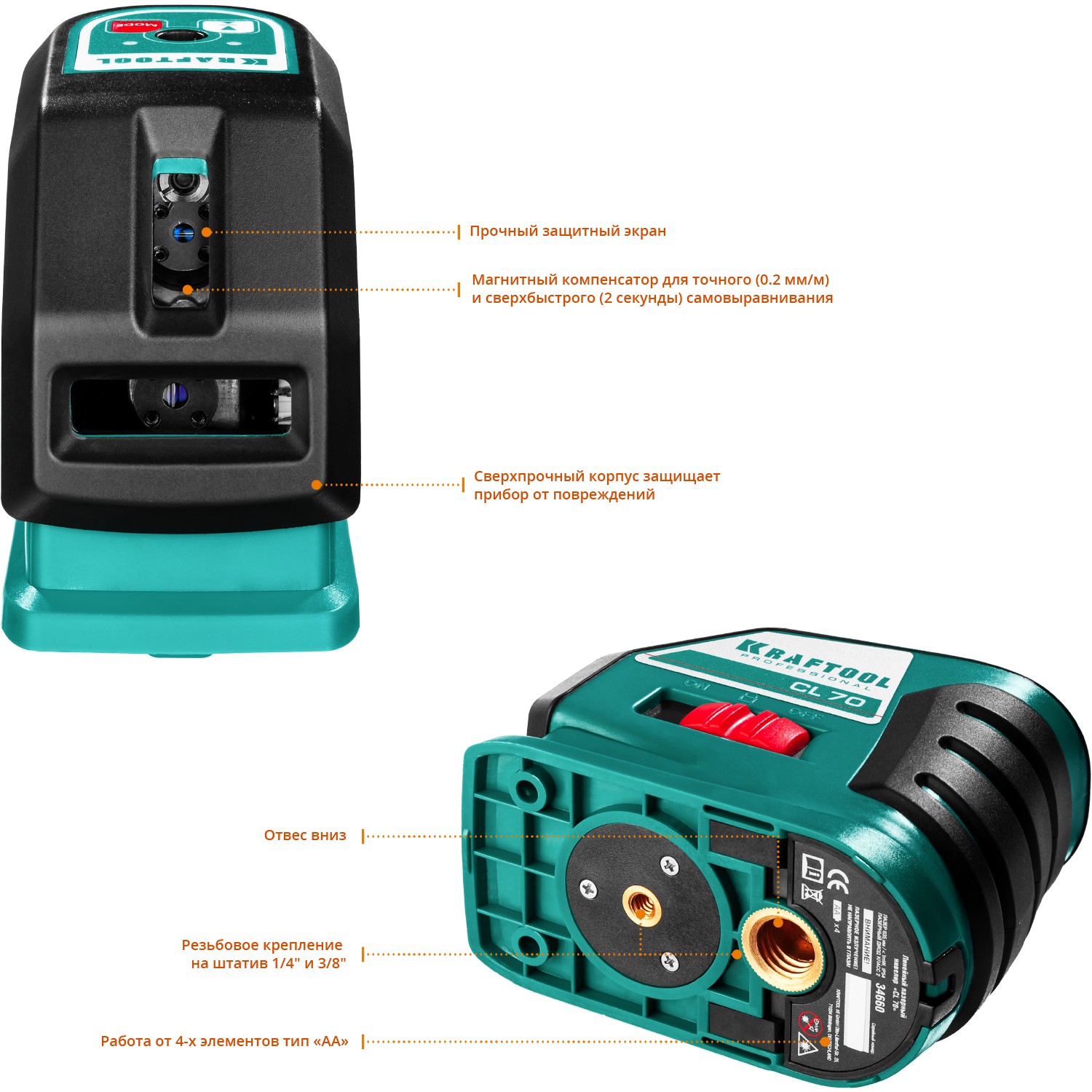 - Функция самовыравнивания устраняет необходимость настройки, гарантирует максимальную точность при разметке.
