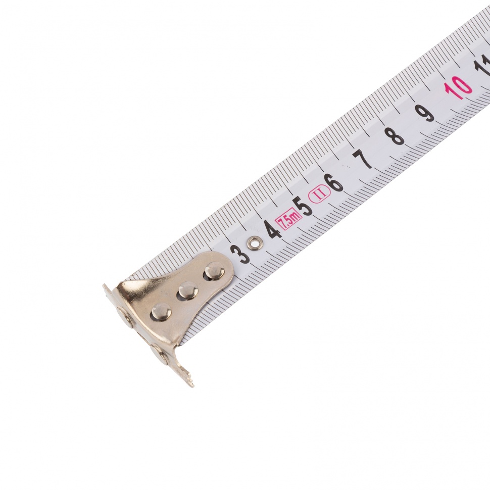 Рулетка Matrix Magnetic 31012, 7,5 м х 25 мм, с магнитным зацепом, используется для измерения различных предметов и расстояний. Имеет 2 класс точности и цену деления 1 мм. Магниты на зацепе позволяют фиксировать измерительное полотно на металлических объектах. Ограничитель ленты прикреплен к ней тремя заклепками, поэтому можно не бояться, что он соскочит во время работы. Рулетка будет полезна во время ремонтных и строительных работ, пригодится также и в домашнем хозяйстве.ПреимуществаКорпус выполнен из прочного ABS-пластика, устойчивого к механическим повреждениям, что увеличивает срок службы инструмента.Механизм автоматической фиксации удерживает ленту в вытянутом положении, что облегчает проведение измерений.На корпусе имеется металлическая клипса, при помощи которой рулетку можно закрепить на ремне.