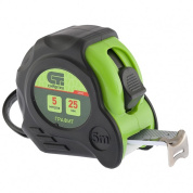 Рулетка Сибртех Графит 32532 с полотном размером 5 м х 25 мм, в обрезиненном корпусе с амортизатором, позволяет быстро измерить длину помещения, заготовок, конструкций и других объектов. Пригодится опытному или начинающему мастеру в ходе проведения измерительных работ в быту, на стройке, производстве. Компактный и удобный инструмент легко поместится в сумку, что делает его оптимальным для выездных работ.ПреимуществаПластиковый корпус имеет обрезиненный чехол, благодаря которому рулетка надежно лежит в руке и не проскальзывает.Встроенный амортизатор предотвращает разрушение корпуса рулетки при быстром возврате ленты.Рулетка оснащена ремешком для подвешивания на запястье, а значит, она не упадет во время работы.