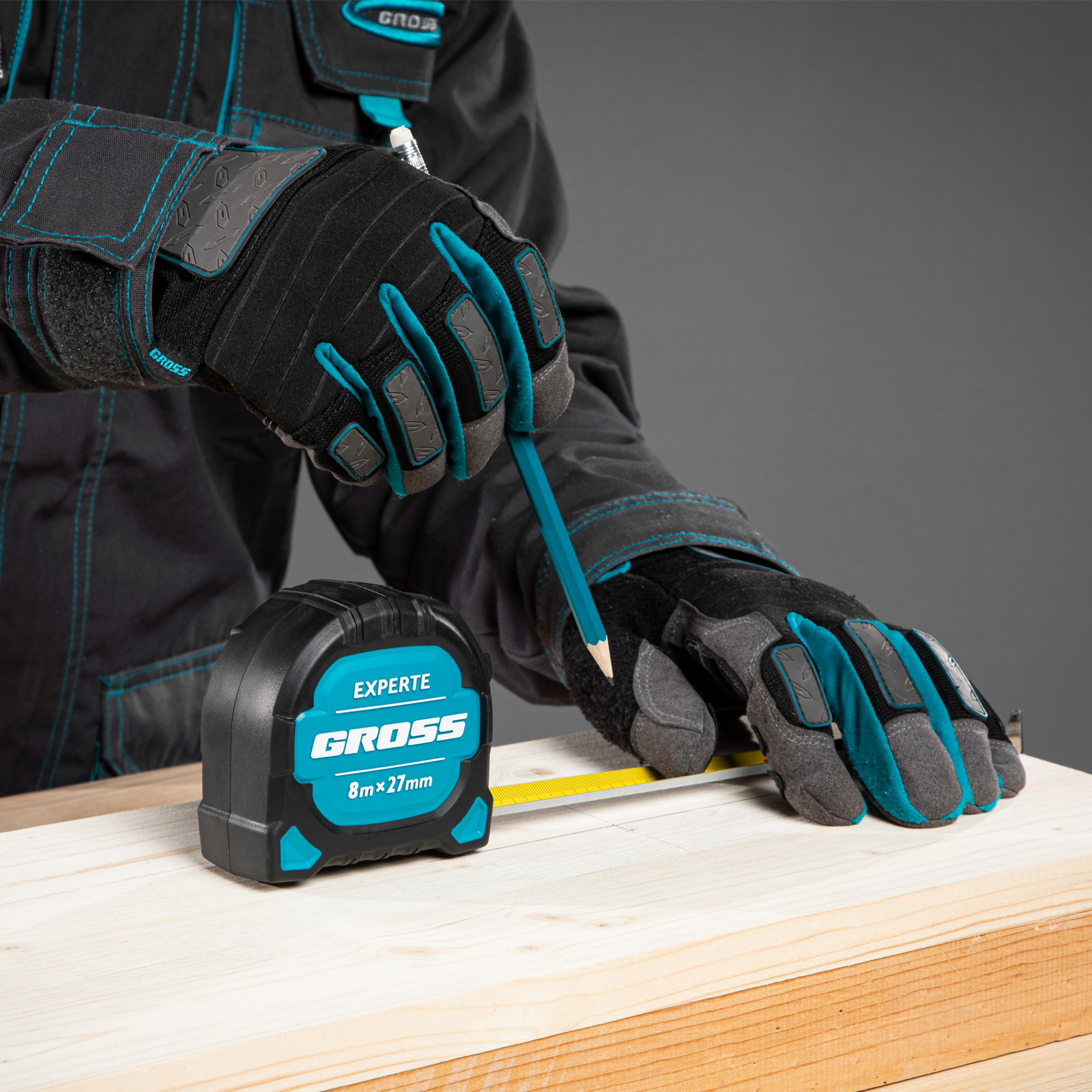 Рулетка Gross «Experte» 32576 с полотном 8 м х 27 мм, в двухкомпонентном корпусе, с двухсторонней разметкой и нейлоновым покрытием ленты, пригодится во время проведения ремонтных и строительных работ. С ее помощью можно измерять заготовки, материалы, конструкции и т.д. Благодаря магнитному зацепу рулетка оптимальна для работы с металлическими поверхностями, а широкое упругое полотно удобно для выполнения измерений в труднодоступных местах.ПреимуществаВысокая точность измерений — за счет подвижного зацепа отметка «0» всегда совпадает с краем измеряемой детали.Долговечность — нейлоновое покрытие увеличивает износостойкость ленты.Удобная эксплуатация — двойной зацеп и двухсторонняя шкала упрощают работу.Прочность и эргономичность — двухкомпонентный корпус с обрезиненным покрытием устойчив к ударному воздействию, а также удобно лежит в руке и не выскальзывает из ладони.