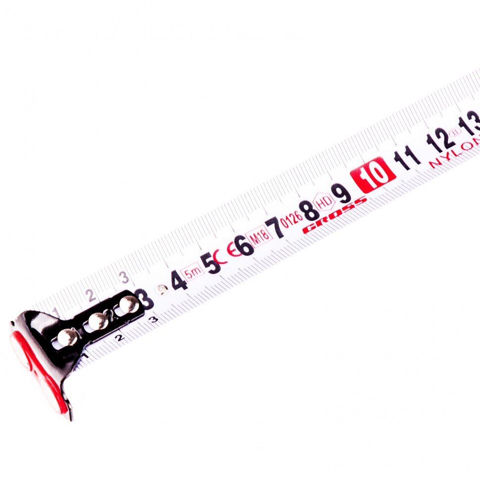 Рулетка Gross «Magnetisch» 32572 в обрезиненном корпусе, с полотном 5 м х 25 мм, магнитным зацепом, нейлоновым покрытием и функцией автоматической фиксации, используется во время ремонтных и строительных работ. Оптимальна для измерения стен, полов, различных заготовок, мебели, оконных проемов и т.д. Благодаря магнитному зацепу рулетку удобно использовать для работы с металлическими поверхностями, а широкое упругое полотно облегчает проведение замеров в труднодоступных местах.ПреимуществаНадежность — обрезиненный корпус устойчив к повреждениям в результате случайных падений с небольшой высоты.Износостойкость — нейлоновое покрытие защищает измерительное полотно от истирания.Функциональность — лента автоматически фиксируется в вытянутом положении и возвращается в корпус только после нажатия кнопки.Точная работа — подвижный зацеп позволяет не учитывать его толщину для выполнения измерений с нуля.Удобная фиксация результатов — крупные цифры измерительной шкалы хорошо видны даже на расстоянии.Комфортная работа — благодаря ремешку и специальному зажиму рулетку можно зафиксировать на запястье или поясе соответственно.