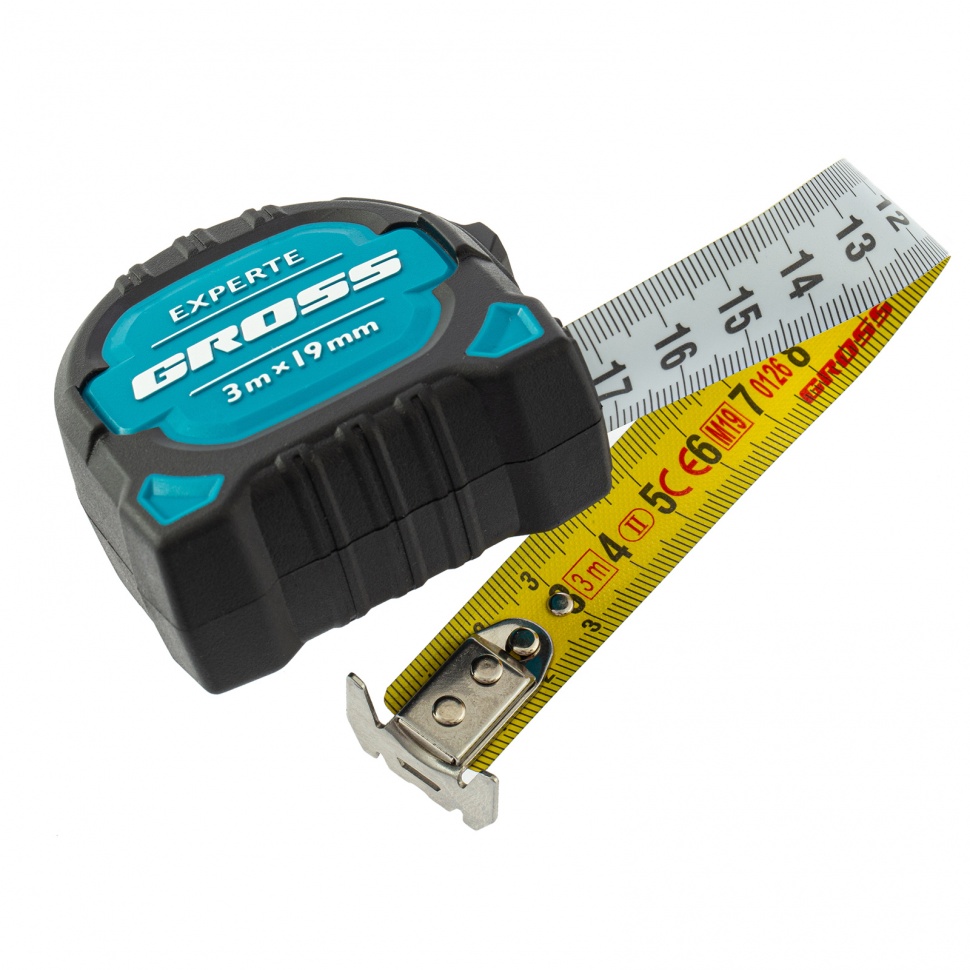 Рулетка Gross «Experte» 32574 с полотном 3 м х 19 мм, в двухкомпонентном корпусе, с двухсторонней разметкой и нейлоновым покрытием, пригодится во время проведения ремонтных и строительных работ. С ее помощью можно замерить заготовки, материалы, конструкции и т.д. Рулетка оптимально подходит для работы с металлическими поверхностями, т.к. имеет магнитный зацеп.Преимущества Двухкомпонентный корпус с обрезиненным покрытием удобно лежит в руке, не скользит и устойчив к ударному воздействию. Нейлоновое покрытие повышает износостойкость ленты, благодаря чему она прослужит гораздо дольше. Полотно толщиной 19 мм делает возможной работу в труднодоступных местах. За счет подвижного зацепа обеспечивается высокая точность измерений, т.к. отметка «0» всегда будет совпадать с краем измеряемой детали. Рулетка оснащена двойным зацепом и двухсторонней шкалой для удобства работы.