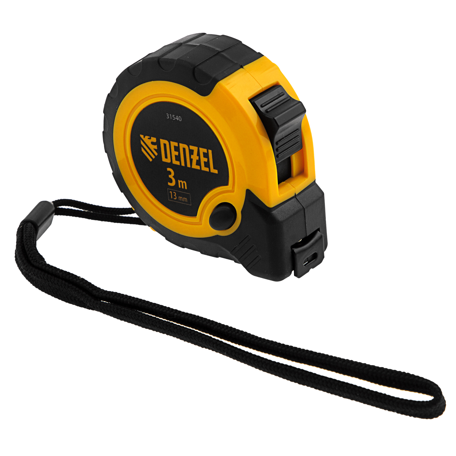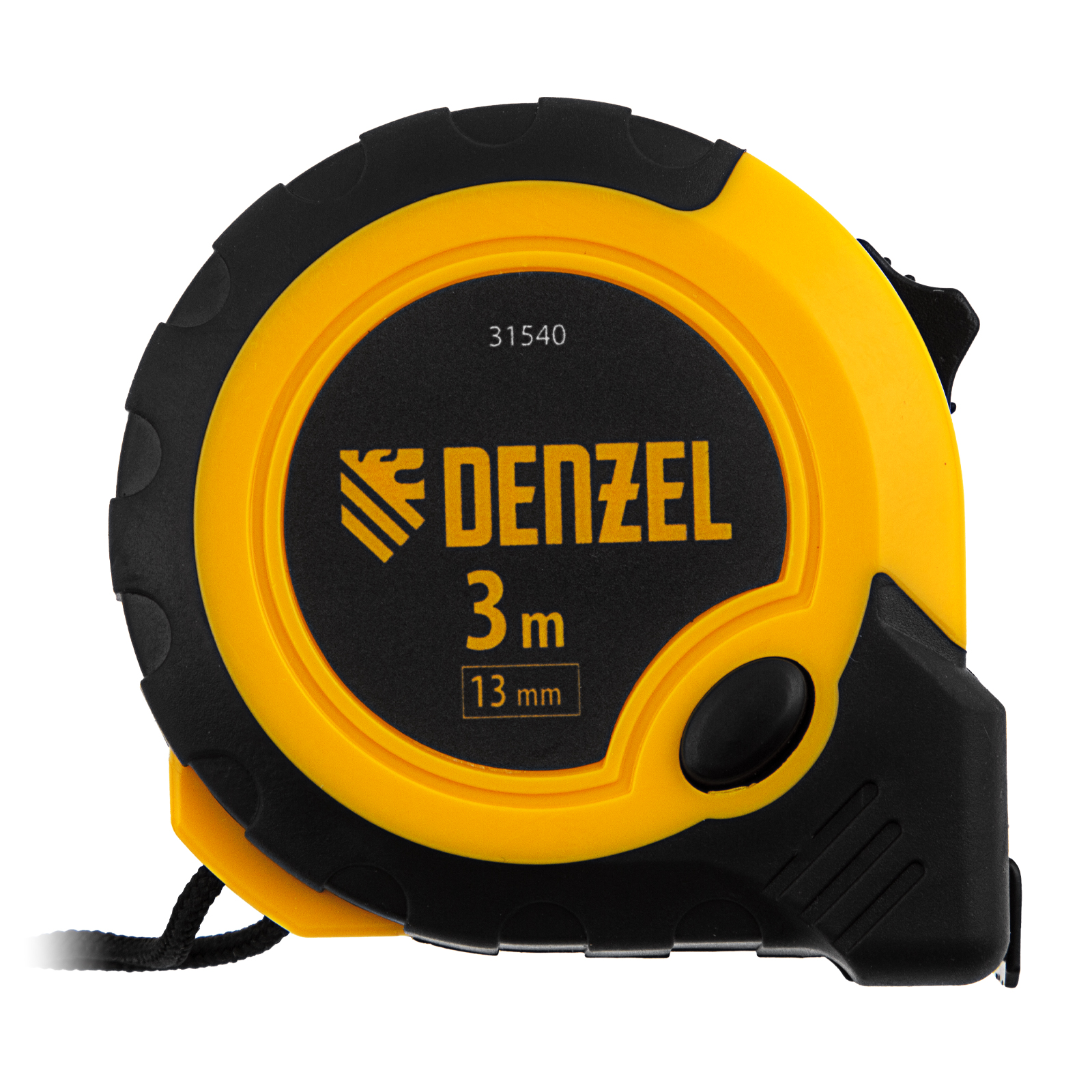 Рулетка Denzel 31540 в двухкомпонентном корпусе, с кнопкой-паузой, с полотном шириной 13 мм и длиной 3 м, используется для измерения расстояний и размеров предметов. Стальная лента с эмалевым покрытием и защитной пластиной в месте крепления зацепа рассчитана на долгий срок службы. Рулетка будет полезна во время строительства и ремонта, а также пригодится в быту.ПреимуществаУдаропрочность — двухкомпонентный корпус из ABS-пластика и вставками из термопластичной резины устойчив к механическим повреждениям.Удобная эксплуатация — клавиша-фиксатор удерживает ленту в вытянутом положении, облегчая проведение измерений.Эргономичность — рулетка снабжена прочным ремешком для подвешивания на запястье.Дополнительные возможности — поясной зажим позволяет закрепить рулетку на ремне, чтобы освободить руки во время работы.Продуманная упаковка — открытый блистер позволяет осмотреть изделие перед покупкой.