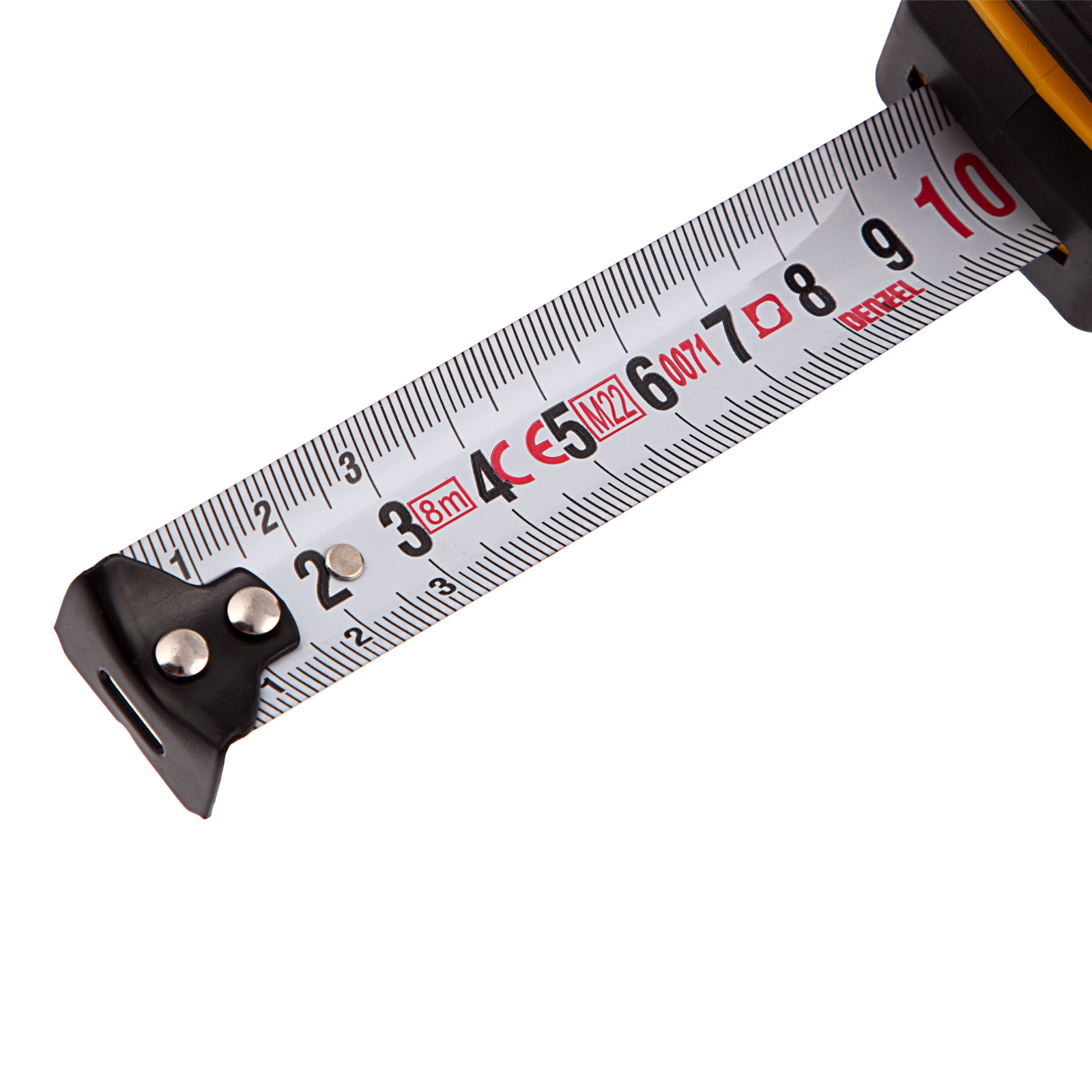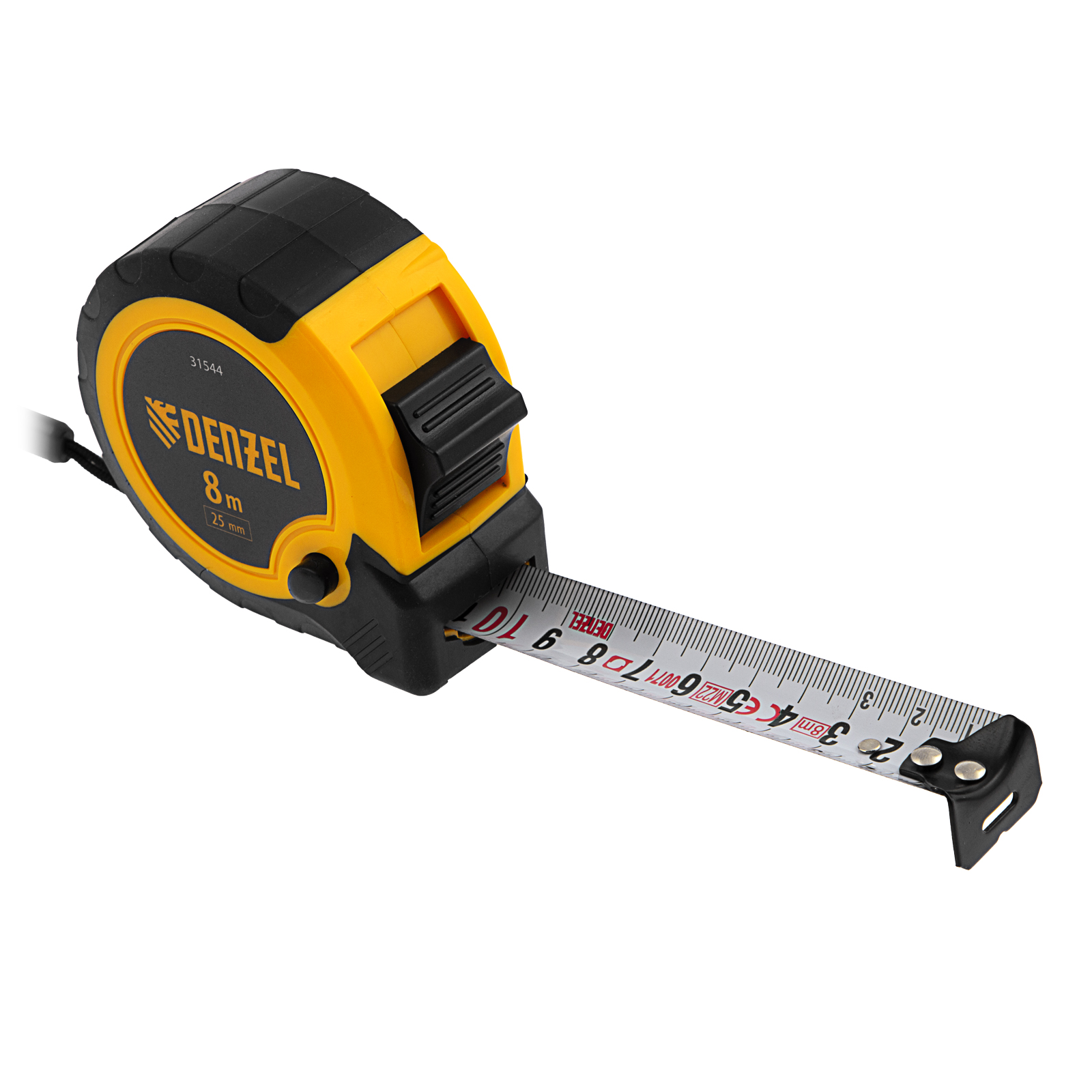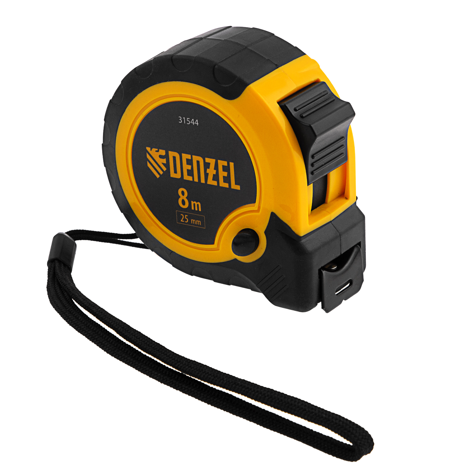 Рулетка Denzel 31544 в двухкомпонентном корпусе, с кнопкой-паузой, с полотном шириной 25 мм и длиной 8 м, используется для измерения расстояний и размеров предметов. Удобна для работы в труднодоступных местах. Стальная лента с эмалевым покрытием и защитной пластиной в месте крепления зацепа рассчитана на долгий срок службы. Рулетка будет полезна во время строительства и ремонта, а также пригодится в быту.ПреимуществаУдаропрочность — двухкомпонентный корпус из ABS-пластика и вставками из термопластичной резины устойчив к механическим повреждениям.Удобная эксплуатация — клавиша-фиксатор удерживает ленту в вытянутом положении, облегчая проведение измерений.Эргономичность — рулетка снабжена прочным ремешком для подвешивания на запястье.Дополнительные возможности — поясной зажим позволяет закрепить рулетку на ремне, чтобы освободить руки во время работы.Продуманная упаковка — открытый блистер позволяет осмотреть изделие перед покупкой.