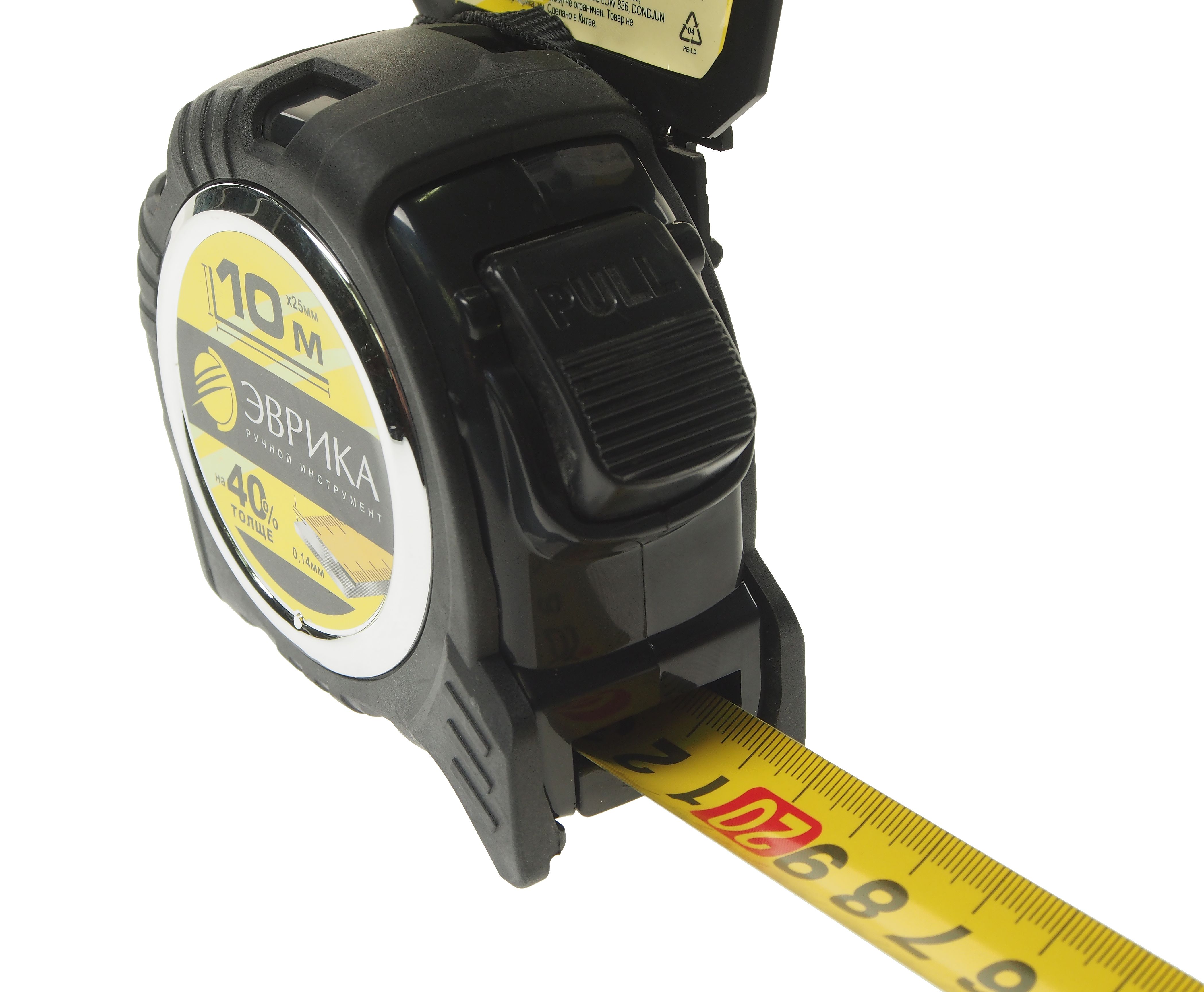 Рулетка ER-04210 имеет двухкомпонентный корпус с фиксатором, автоблокировкой и магнитным зацепом.