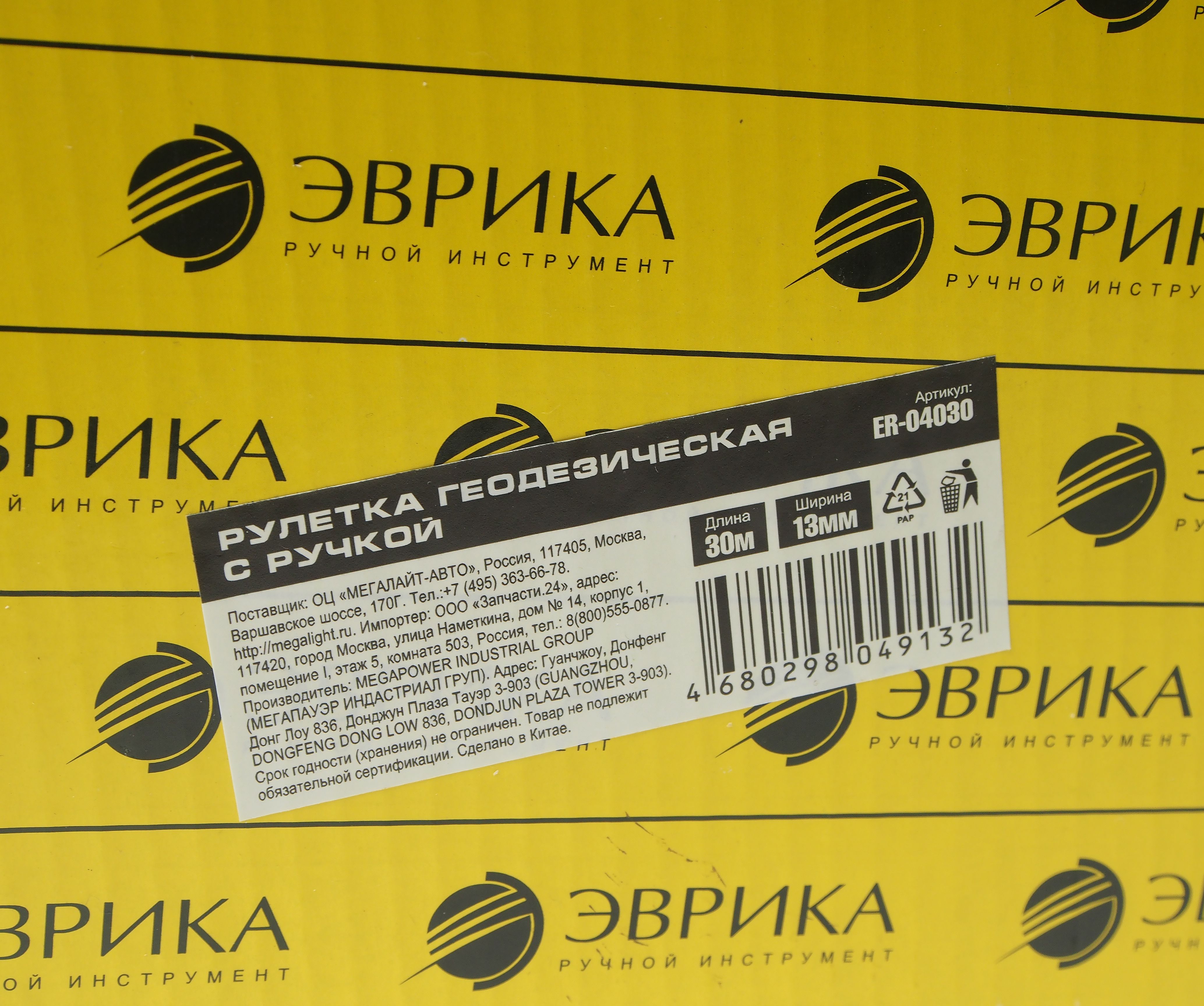 Рулетка ER-04030 имеет двухкомпонентный корпус с фиксатором, автоблокировкой и магнитным зацепом.