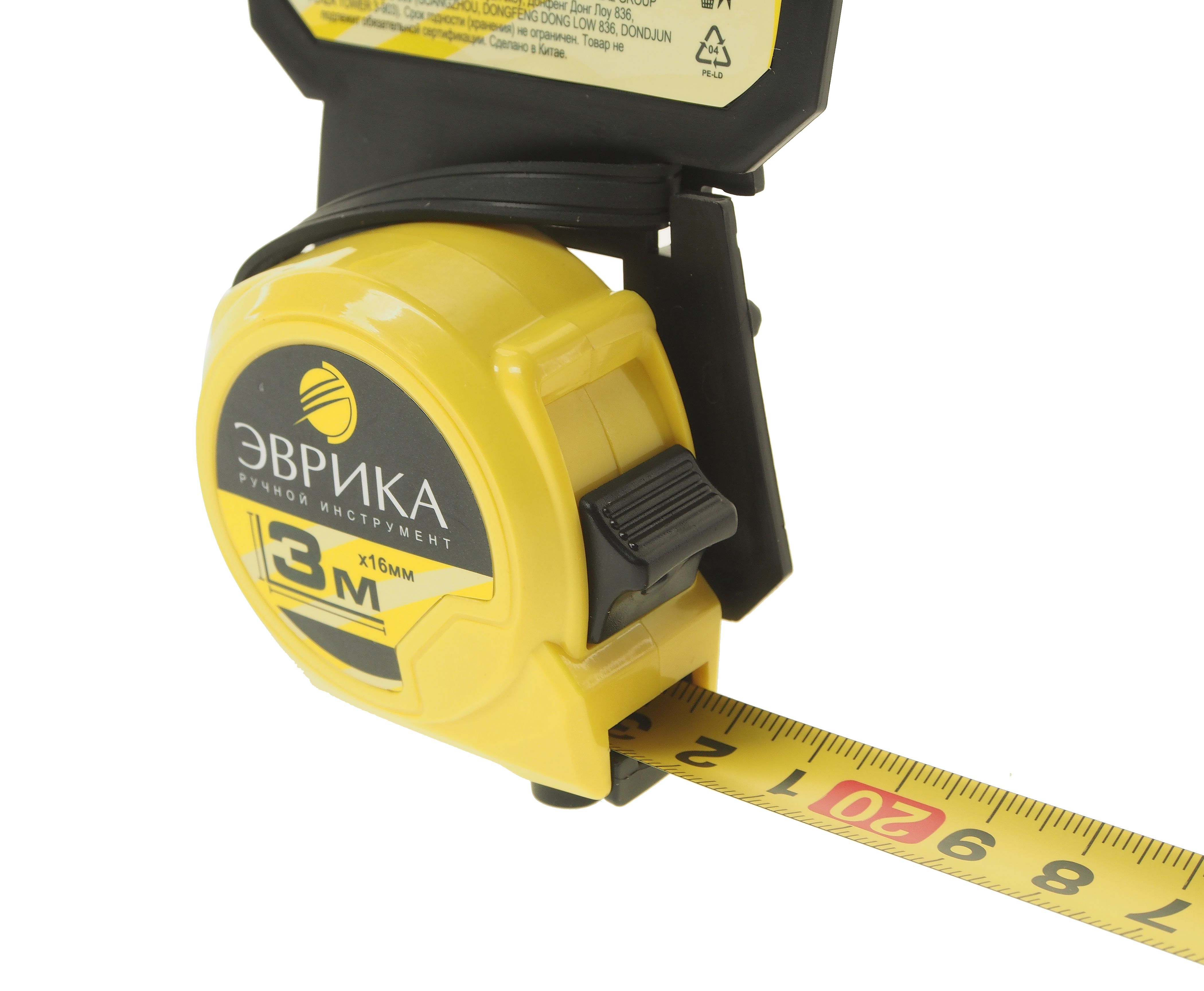 Рулетка ER-04103 имеет двухкомпонентный корпус с фиксатором, автоблокировкой и магнитным зацепом.