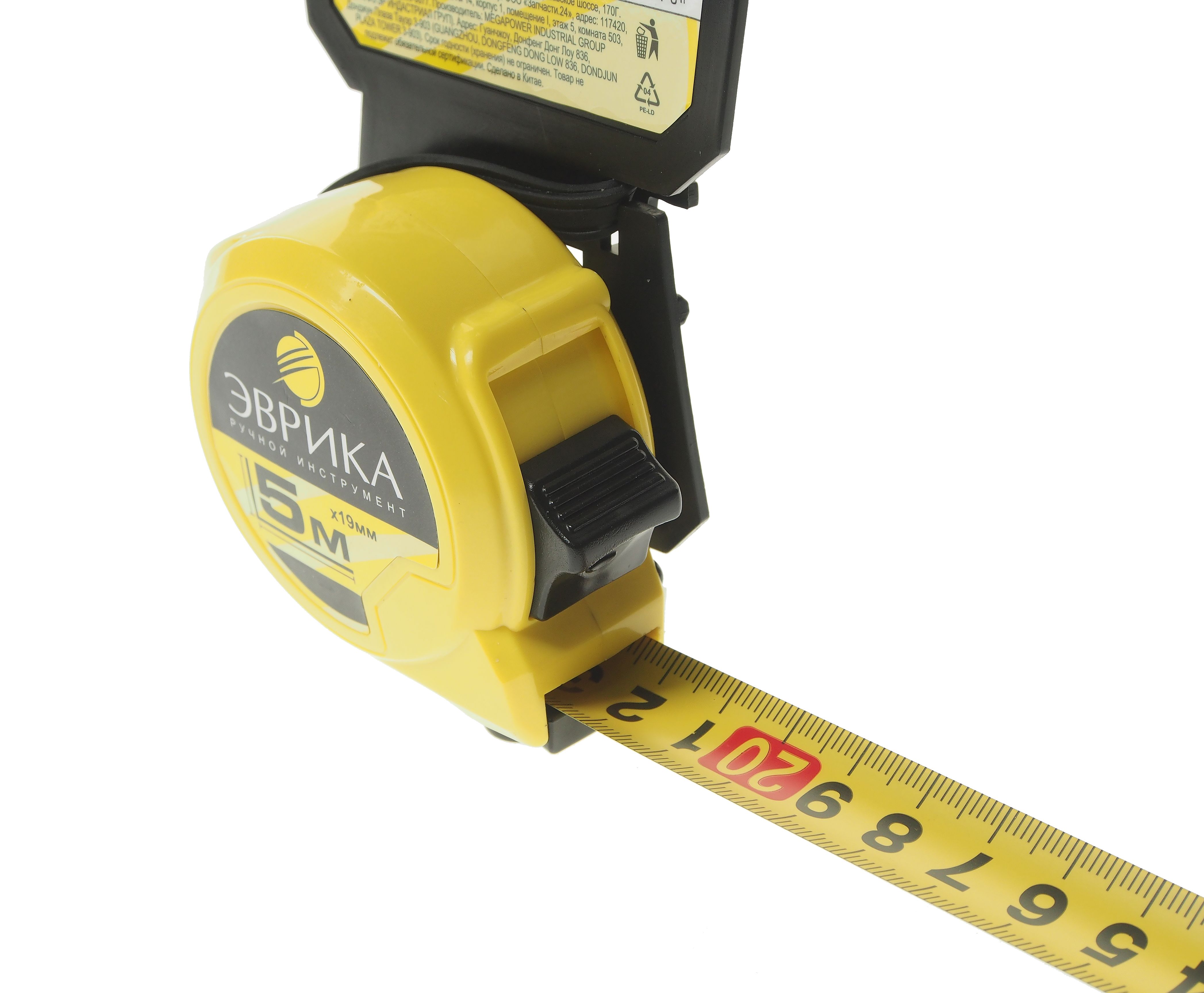 Рулетка ER-04105 имеет двухкомпонентный корпус с фиксатором, автоблокировкой и магнитным зацепом.