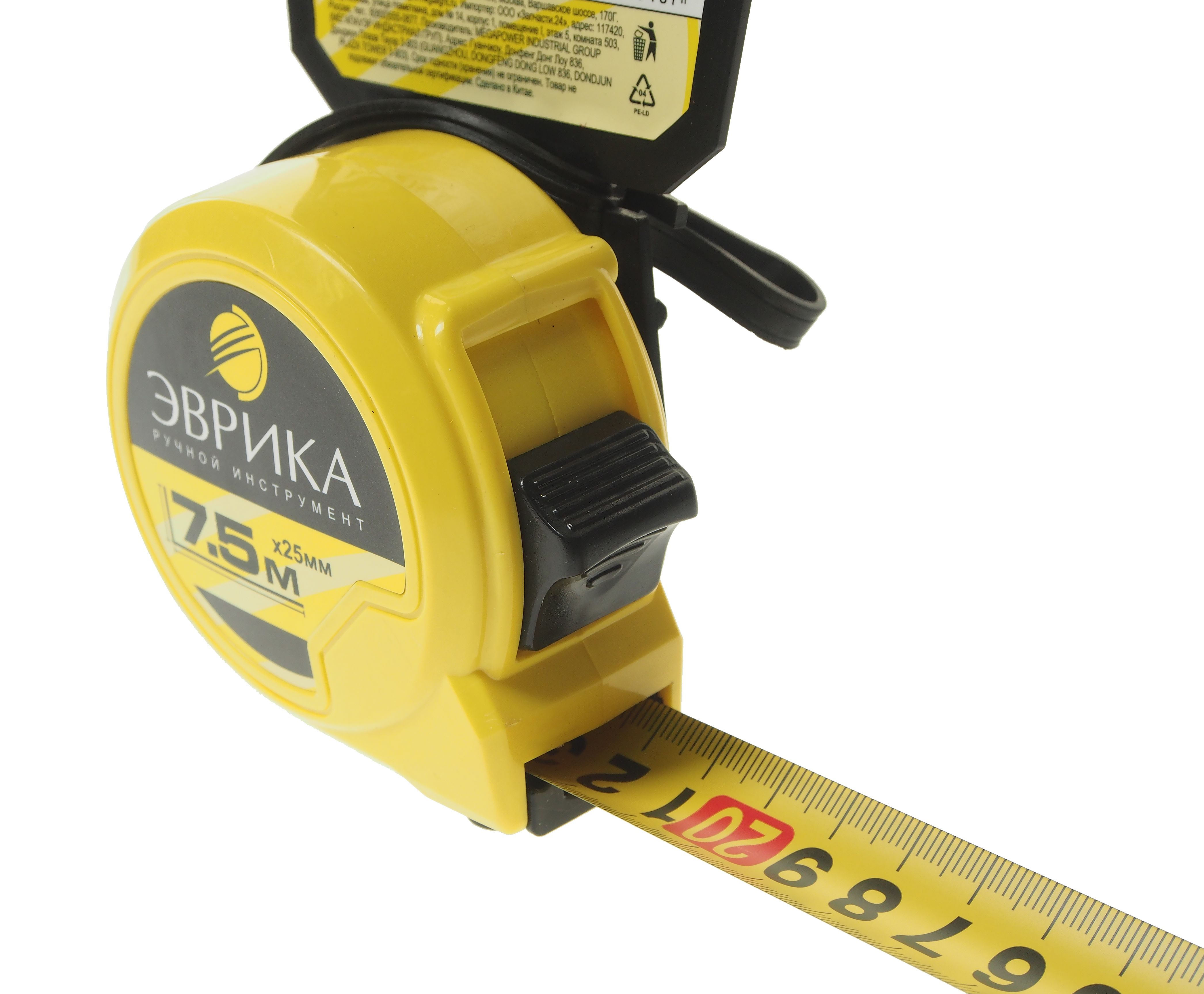 Рулетка ER-04175 имеет двухкомпонентный корпус с фиксатором, автоблокировкой и магнитным зацепом.