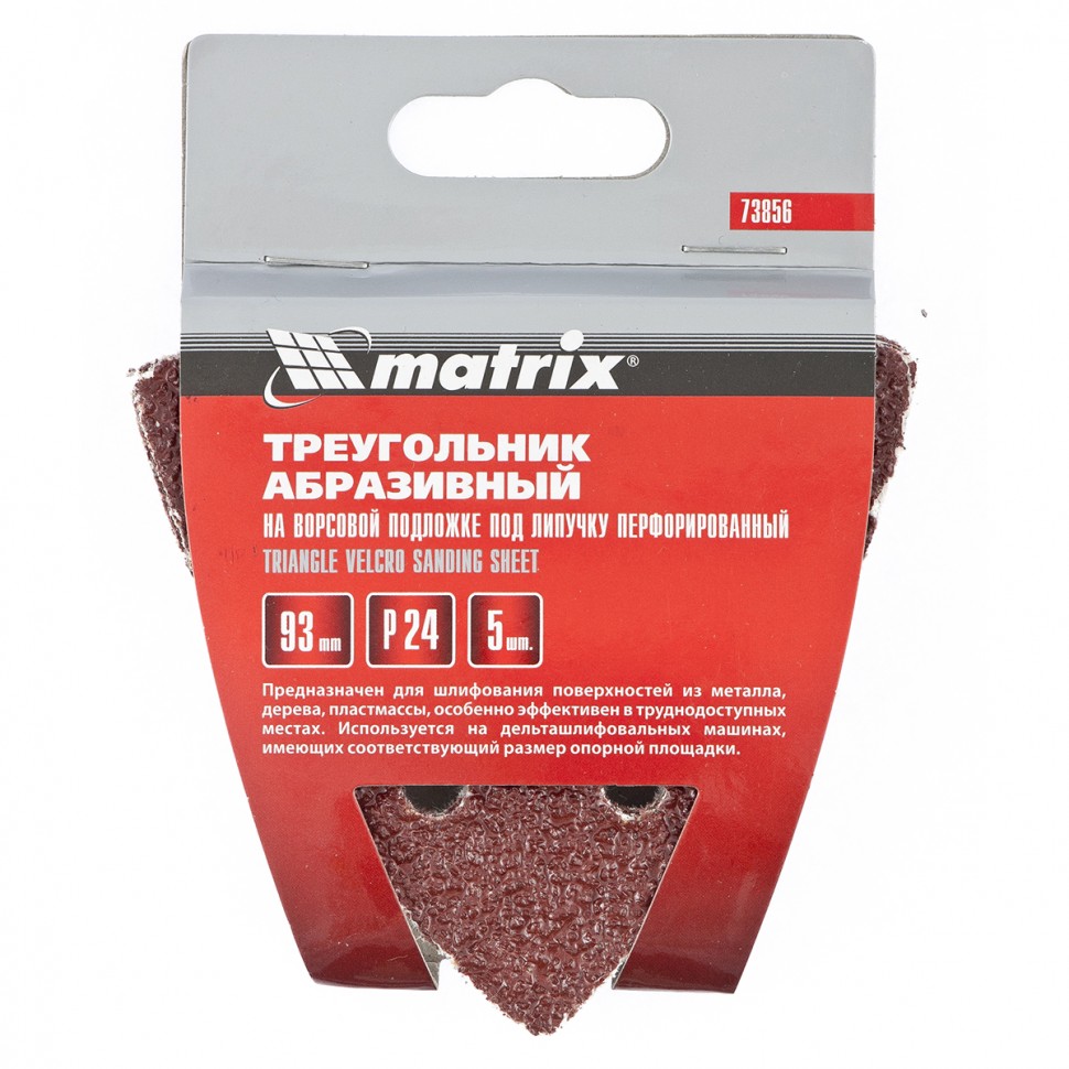 Перфорированный абразивный треугольник под «липучку» Matrix Р 40 арт. 73857 предназначен для дельташлифовальных машин с опорной площадкой 93 мм. С помощью абразива крупной зернистости Р40 можно произвести сухую черновую обработку дерева, металла, пластмассы, снять старое покрытие, устранить грубые дефекты и удалить ржавчину. Треугольная форма облегчает обработку труднодоступных мест.ПреимуществаГрани абразива из твердого оксида алюминия сохраняют остроту и эффективность долгое время.Крупные зерна 400-500 мкм забиваются медленно, поэтому треугольник эффективен для большого объема работ.Перфорация способствует отводу пыли и более эффективной обработке материалов без риска их повреждения, а также увеличивает срок службы треугольника.Ворсовая основа обеспечивает быстрое и надежное сцепление с липучкой опорной насадки и легкую замену оснастки.В наборе 5 штук — удобно.