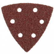 Перфорированный абразивный треугольник под «липучку» Matrix Р 24 арт. 73856 предназначен для дельташлифовальных машин с опорной площадкой 93 мм. С помощью абразива крупной зернистости Р24 можно произвести сухую черновую обработку дерева, металла, пластмассы, придать заготовкам окончательную геометрию, зачистить их от старых покрытий, ржавчины и заусенцев. Треугольная форма облегчает обработку труднодоступных мест.ПреимуществаГрани абразива из твердого оксида алюминия сохраняют остроту и эффективность долгое время.Крупные зерна 630-800 мкм забиваются медленно, поэтому треугольник эффективен для большого объема работ.Перфорация способствует отводу пыли и более эффективной обработке материалов без риска их повреждения, а также увеличивает срок службы треугольника.Ворсовая основа обеспечивает быстрое и надежное сцепление с липучкой опорной насадки и легкую замену оснастки.В наборе 5 штук — удобно.
