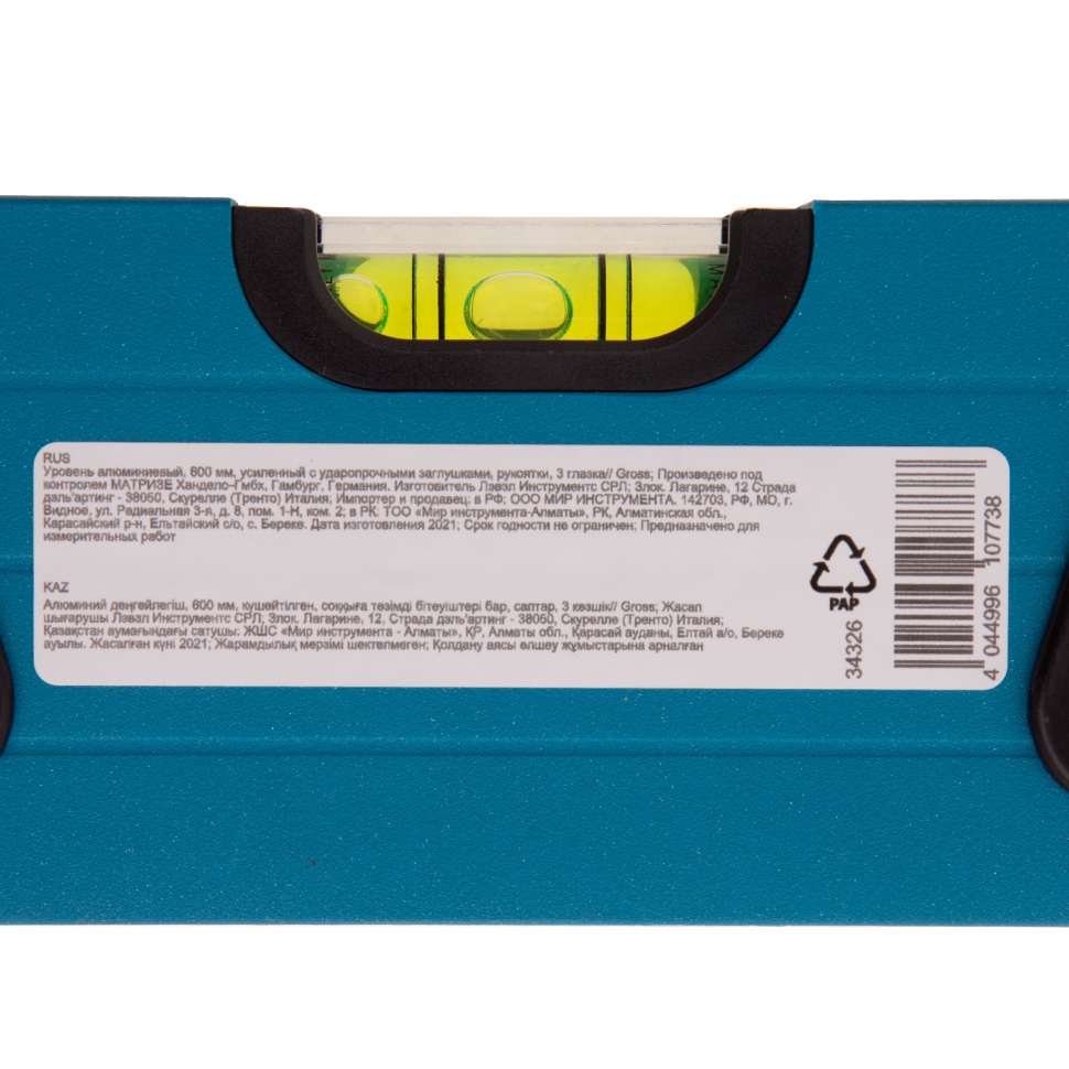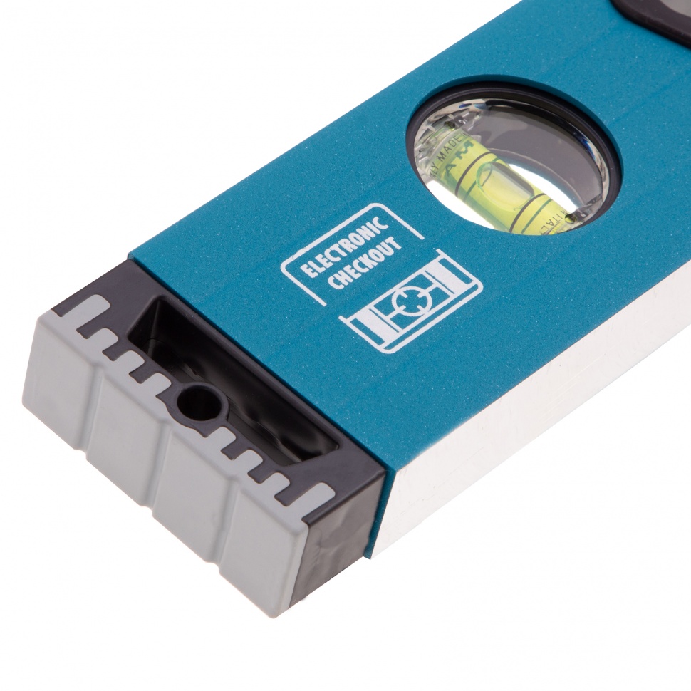 Усиленный алюминиевый уровень Gross 34326 длиной 600 мм, с ударопрочными заглушками, рукоятками и 3 глазками, — универсальный инструмент для решения профессиональных задач на строительной площадке. Благодаря ему можно выровнять поверхности относительно горизонтали и вертикали или проверить соответствие углу 45 градусов.ПреимуществаУсиленная конструкция — двухкамерный алюминиевый профиль повышает стойкость к скручиванию и обеспечивает долгий срок службы уровня.Эффективная работа — благодаря фрезерованной подошве погрешность измерений сведена к минимуму.Комфортная эксплуатация — резиновые рукоятки предотвращают проскальзывание инструмента в руках.Ударопрочность — двухкомпонентные заглушки обеспечивают сохранность инструмента при падениях с небольшой высоты.Удобное хранение — боковые отверстия служат для подвешивания инструмента на крючок.Для определения отклонения вертикали 90 градусов необходимо использовать пузырьковую ампулу только в верхнем положении уровня. Только базовая поверхность является рабочей (противоположная ампуле 180 градусов).