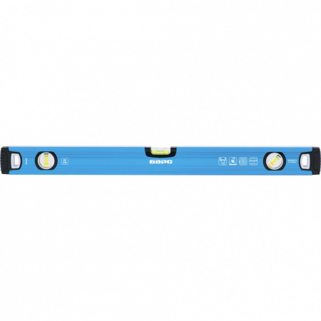 Фрезерованный алюминиевый уровень Барс 34430 длиной 1500 мм, с профилем 1,6 мм и ударопрочными заглушками, оснащен 3 глазками, которые позволяют проверить вертикальные, горизонтальные поверхности и соответствие наклонных поверхностей углу 45 градусов. Инструмент повышает точность строительных и ремонтных работ.Для определения отклонения вертикали 90 градусов необходимо использовать пузырьковую ампулу только в верхнем положении уровня. Только базовая поверхность является рабочей (противоположная ампуле 180 градусов).ПреимуществаИнструмент изготовлен из легкого и прочного алюминиевого профиля (марка 6063).Высокая точность работы достигается за счет фрезерованной рабочей части и двойного контроля при установке ампул.V-образная форма подошвы обеспечивает возможность фиксации инструмента на трубах при проведении сантехнических работ.Уровень выдерживает падения с небольшой высоты за счет заглушек из износостойкой термопластичной резины (TPR).Строительный уровень удобно хранить на крючке, т.к. в боковых частях имеются отверстия.