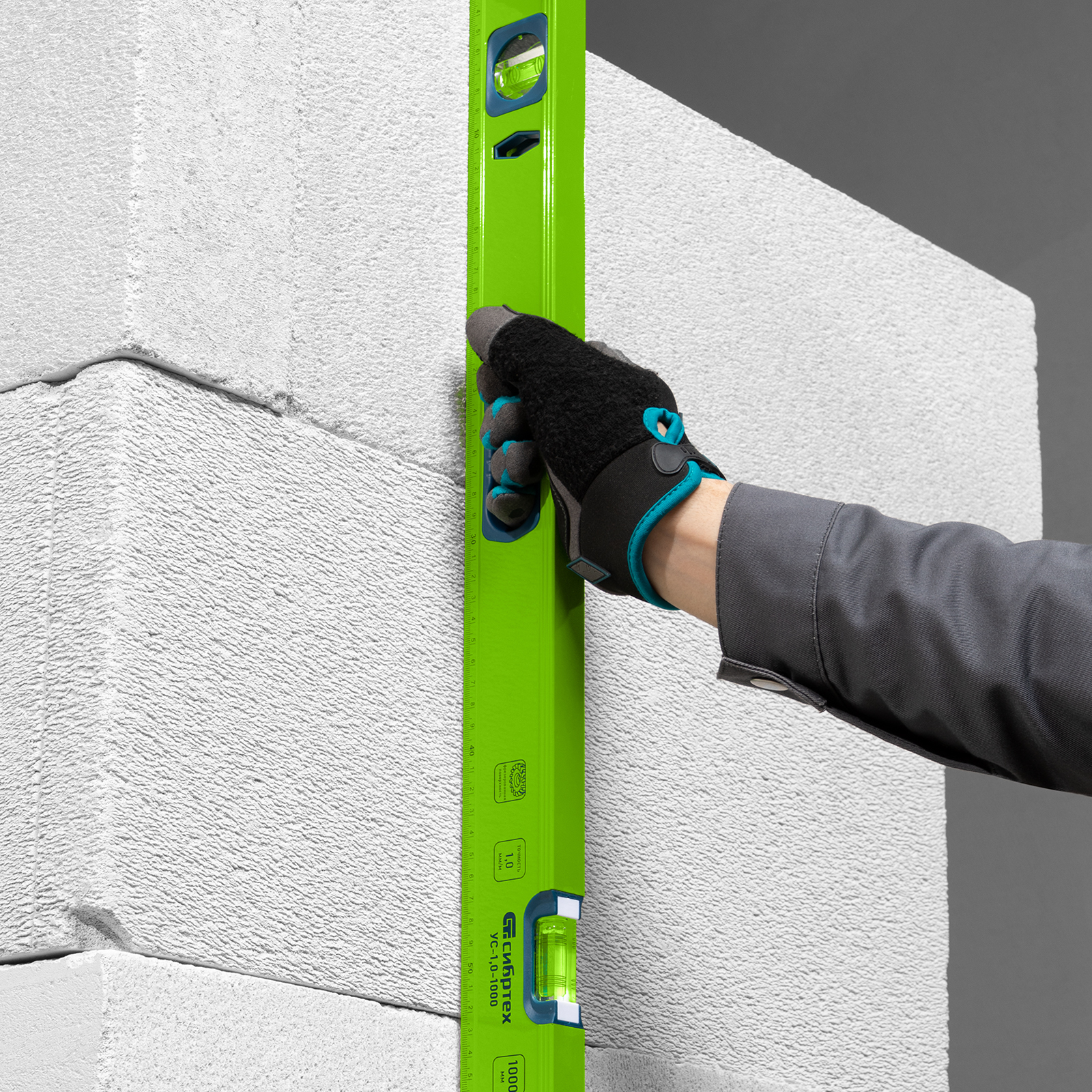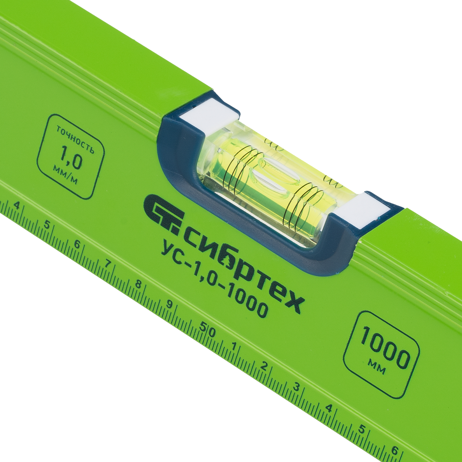 Алюминиевый фрезерованный уровень Сибртех УС-1,0-1000 34103 длиной 1000 мм, с 3 глазками и рукоятками, пригодится для проведения работ, требующих высокой точности. Поможет выявить отклонения от горизонтальной и вертикальной плоскостей и угла 45°. Используется во время строительных и отделочных работ, будет полезен начинающему мастеру и профессионалу.ПреимуществаПрочность и долговечность — инструмент изготовлен из алюминиевого профиля.Высокая точность — глазки установлены с использованием электронного контроля, фрезерованная рабочая часть уменьшает погрешность при выполнении измерений.Дополнительные возможности — измерительная шкала позволяет определять габариты заготовок, полок и т.д.Комфортная работа — благодаря рукояткам инструмент легко удерживать.Для определения отклонения вертикали 90° необходимо использовать пузырьковую ампулу только в верхнем положении уровня. Рабочей является только базовая поверхность (противоположная ампуле 180°).